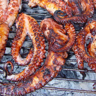 Mindenféle halat el lehet így készíteni. A halnál fontos, hogy lassú parázs legyen. A polip kisütése fél órát vesz igénybe. A garnelarák 15 perc.