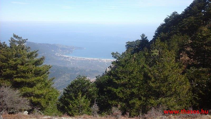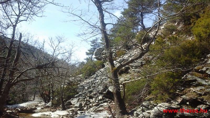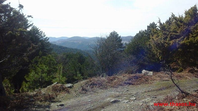 Utunkat folytattuk felfelé a menedékházhoz. A tiszta atmoszféra csodálatos tájat mutatott a sziget belsejéről és a sziget déli tengerpartjáról, valamint a távoli Athos nyúlványról. Az út végig tökéletes volt. A forrást ahogy elhagytuk, kissé meglepődve álltunk meg. A partvidékről ahogy a hegyre nézünk, lehetett látni a fehér foltokat. Sejtettük, hogy fogunk majd hóval találkozni a csúcs felé, de hogy közvetlen az úton lesz havas kalandunk, az váratlanul ért bennünket. 30-50 cm vastagságú jéggé fagyott foltok voltak az úton. A menedékház forrása előtt szinte teljes hosszúságban ott volt a hó. Utolsó havazásunk február 11-én volt. A hegy ezen szakaszát a nap keveset érheti, és valószínű az első decemberi hótól február közepéig csak gyűlt-gyűlt a sok hó, így maradt a 3 hetes napfényes idő ellenére is.