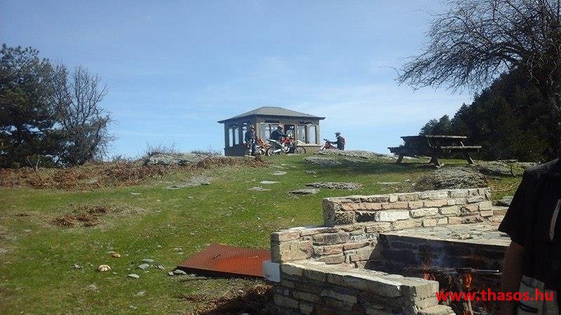 A menedékháznál nagy élet volt. Theologosból fiatalok több napra kibérelték a házikót és fent laktak. Már épp hazakészülődtek odaértünkre. Panagia falujából is vagy 10 motoros verte fel a természet madárcsicsergéses csendjét. A családos férjek szombati kirándulásra jöttek fel. A kecskeugrató motorjukkal a legnehezebb szakaszt választották a biztos kaland élményéhez.