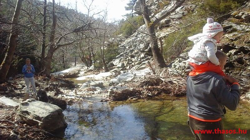 Március első napjaiban kihasználva a hosszan tartó, inkább áprilisra jellemző napfényes meleg időt, családi kirándulást tettünk az Ypsárió menedékházához. Első nagy megállónkat a Jenna tónál tartottuk. Csalódottan láttuk, hogy szinte nincs vize a tónak, valamint eléggé feldúlt a környezete. Lemerészkedve a mesterségesen kiképzett tó völgyébe azt fedeztük fel, hogy a régen deltaszerűen szétágazó vízerek egy mederbe lettek terelve. Valamint a patakok amerre futottak a széles szurdokvölgyben, mindenhol kicsiny platánfák voltak. Ezt a friss erdőséget teljesen feldózerolták, egyelőre még a fatörzsek a földbe temetve hagyva. A sáros süppedő terepen előre mentünk a tavakig. Ott béke uralkodott. A kecskék tőlünk megijedve a hegy felé vetették magukat. Távoli mekegésüket a mindenhonnan hangosan csobogó vízesés hangja elfedte. A tavak száma a háromról négyre nőtt. Mély vizük, tisztán, csábítóan marasztalásra hívott bennünket, hogy gyönyörködjünk az egymást követő négy tó vizének csobogó dalában. Hogyan távoztunk onnan? Ezt másoknak nem ajánlom. Én magam is mérhetetlenül felháborodva követtem a csapatunk férfi tagjait, kik lusták voltak a nehéz terepen visszagyalogolni. A legbelső tótól a hirtelen meredeken magasló útra azonnal felkaptattak. Ez nagyon veszélyes, hisz a talaj nem kötött , a kiálló kisebb kövek alábukhatnak. Szerencsére egyikünknek sem lett baja. Ez a módi eszébe ne jusson másnak!