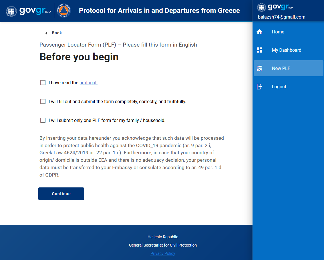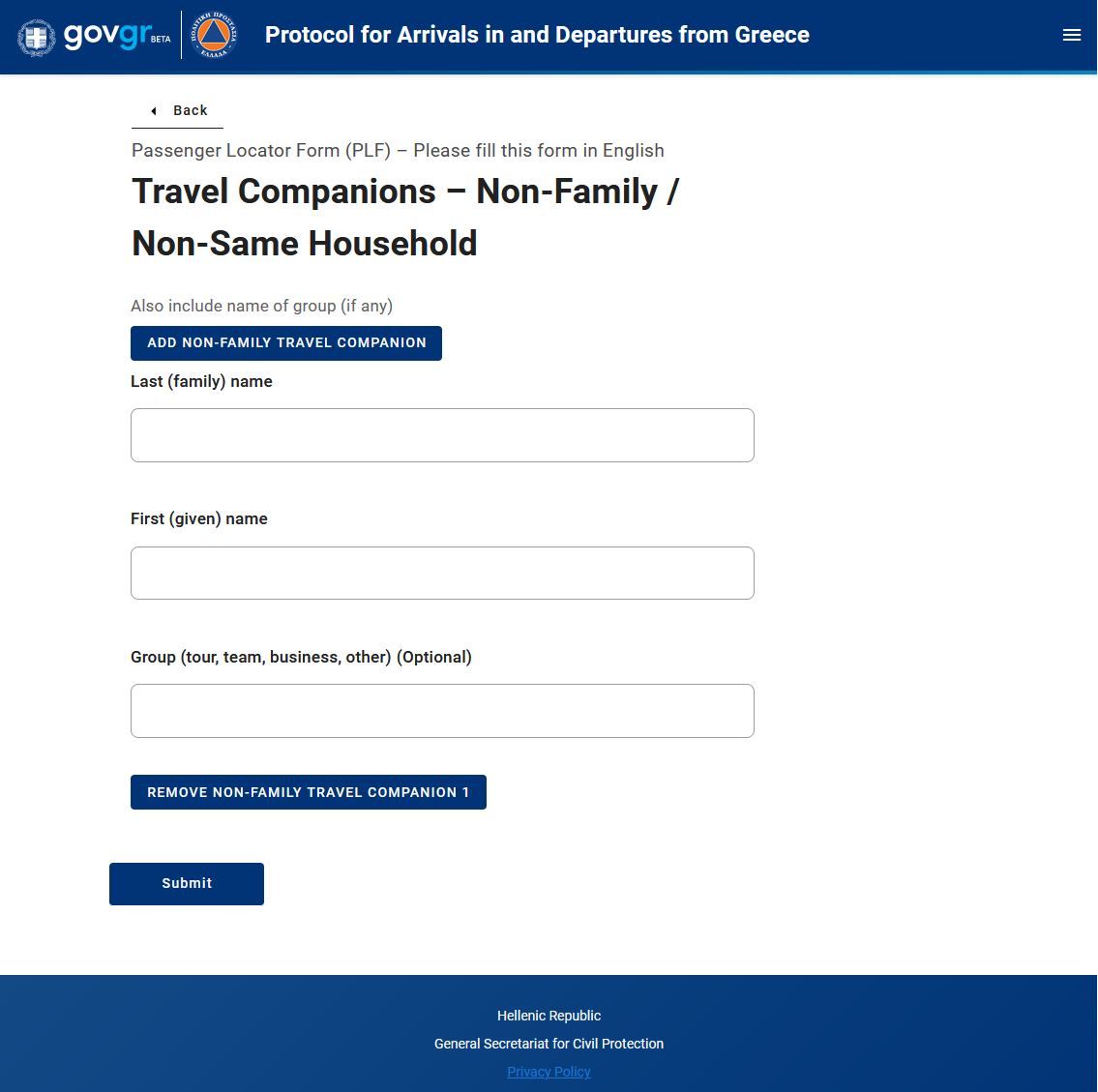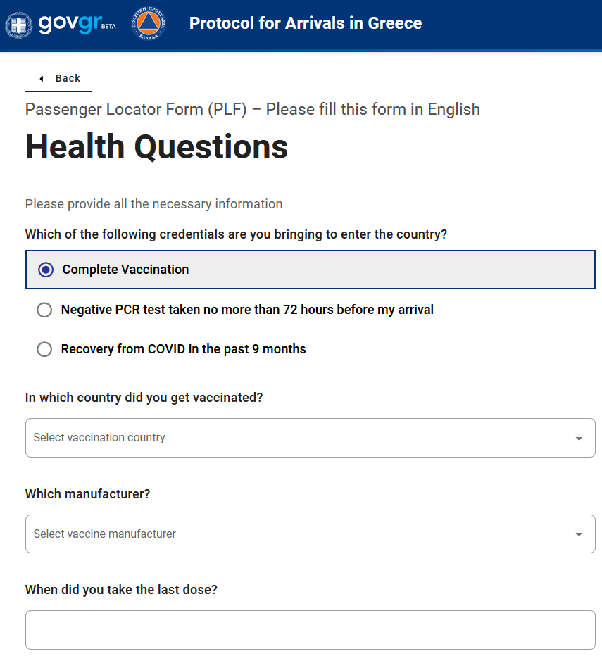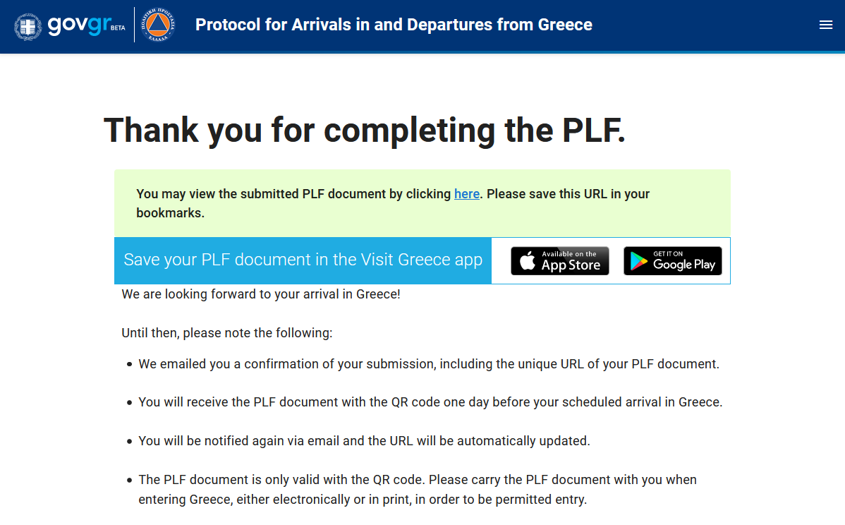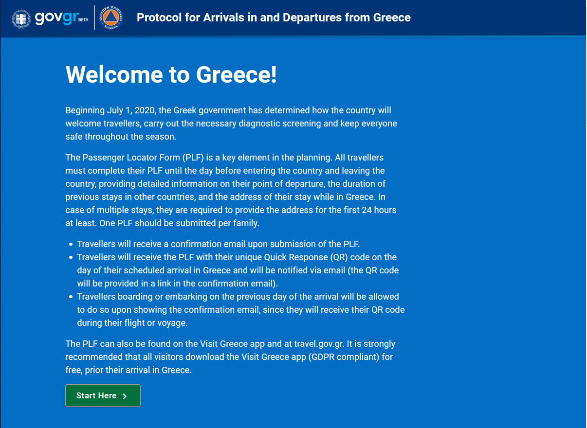 A görög kormány Közegészségügyi Hatóságának kiadott rendelete szerint a Görögországba utazóknak 24 órával a várható érkezés előtt regisztrálniuk kell egy angol nyelvű online adatlap kitöltésével.