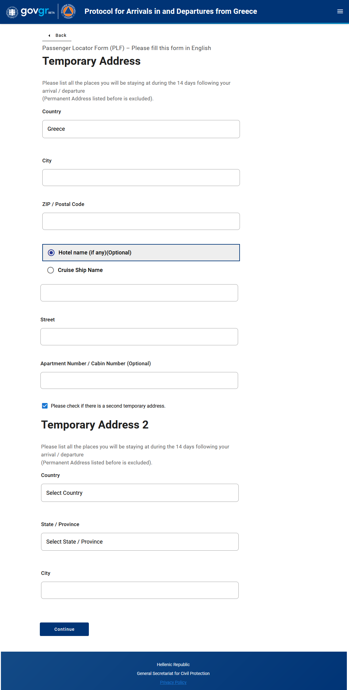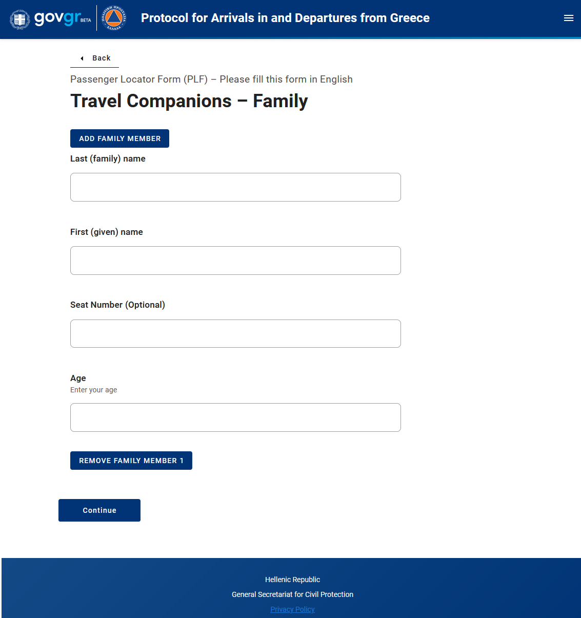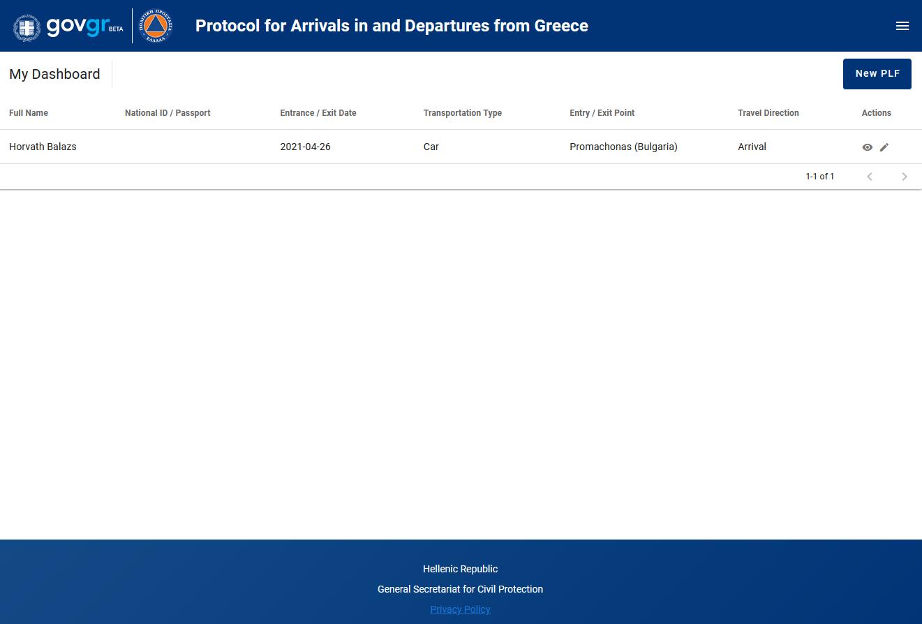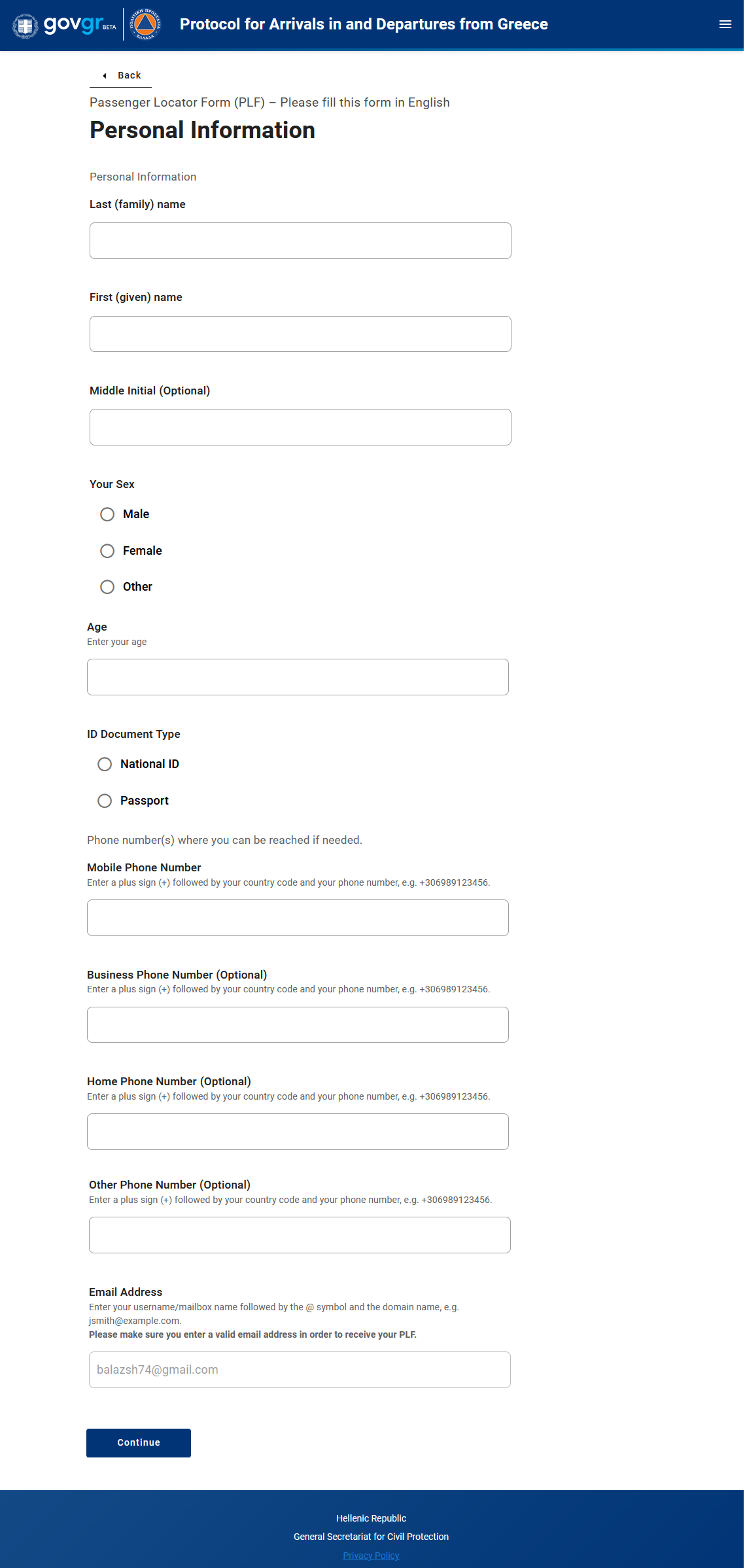 A görög kormány Közegészségügyi Hatóságának kiadott rendelete szerint a Görögországba utazóknak 24 órával a várható érkezés előtt regisztrálniuk kell egy angol nyelvű online adatlap kitöltésével.