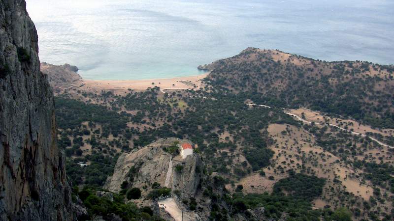 A legfontosabb templomok közé tartozik a sziget déli partja, Pahia Ammos feletti 600 méter tengerszint feletti magasságban álló kápolna is. Neve Panagia Krimniotissa.
