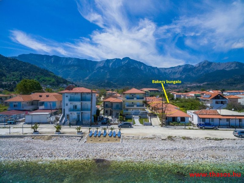 A kettő lakásos bungaló oldalsó fekvésben áll teljesen a tengerparton.