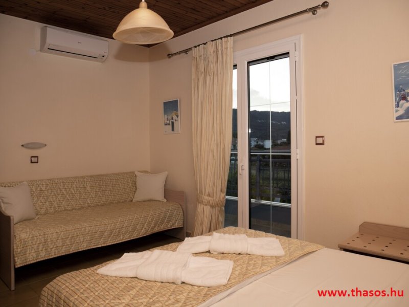N2. Stúdió: Franciaágy 2 főre+ egy ágy/ tengeri panoráma./ Teakonyhás. Babaágy is elhelyezhető.