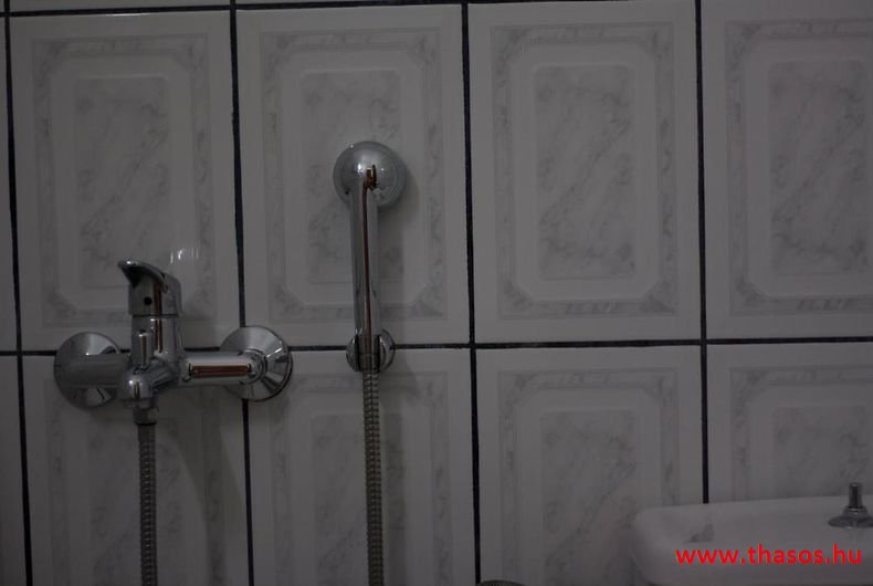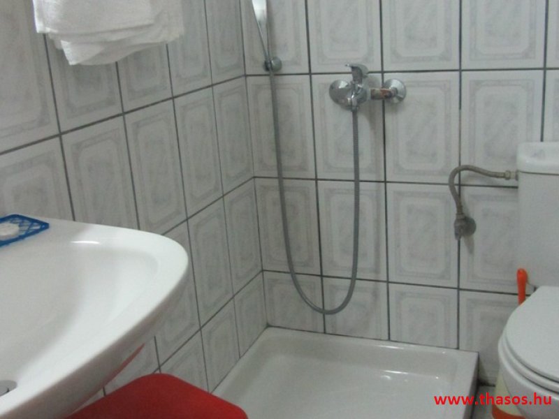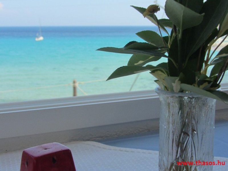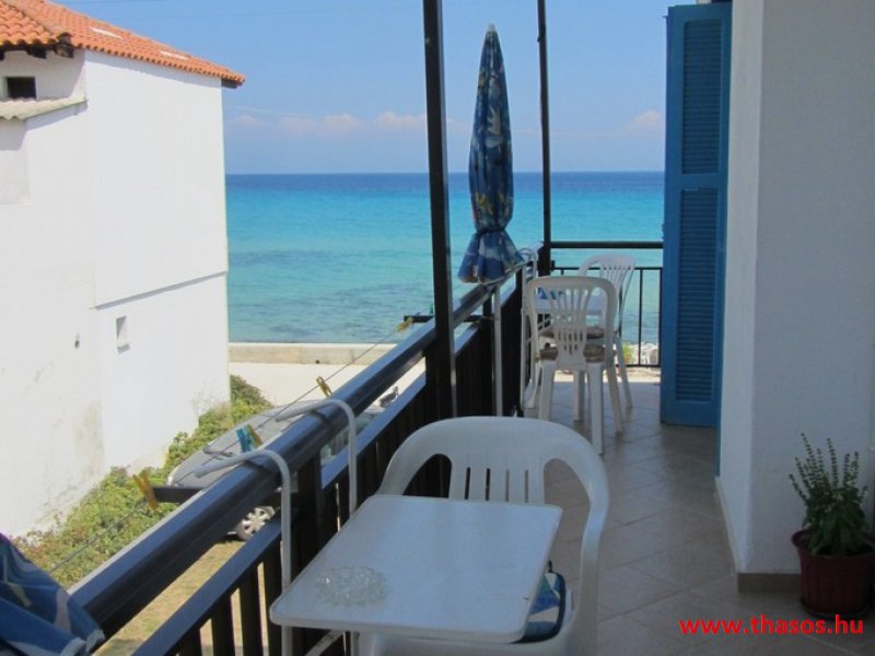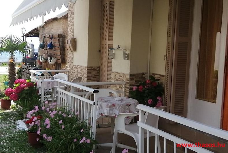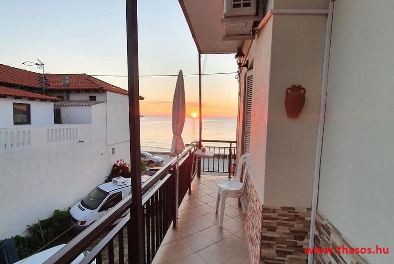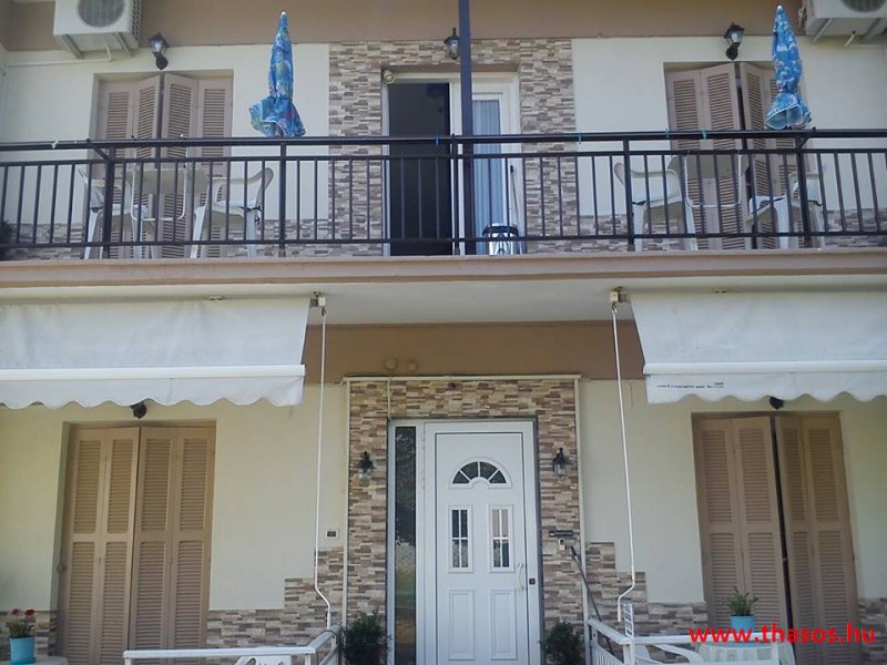 Leírás: Az épület oldalvást a tenger felé épült, közvetlen a parton. Az Alexander Stúdió központ felé eső oldalsó szomszéd épülete ez. Nyugodt környék. Bejárat csak a strand felőli földes bekötőútról. Ez az út gyér forgalmú, leginkább a gyalogos strandolókat jelenti. Az esti órákban kizárólagosan csak gyalogosan, a centrum tavernákhoz vezető sétányként használható. A partszakasz és a strand keskeny, közvetlen a víznél homokos, de az út felől sóderes, sekély vizű, napágy nélküli strandszakasszal. Az apartmanház magánparkolója az épület oldalánál saját, de nem zárt területen van.