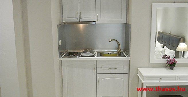 Családi vállalkozás Thassos gyönyörű szigetén, Észak-Görögországban. Thassos fővárosának, Limenasnak a központjában épült, egy nagyon csendes és zöldövezetben. A közelmúltban felújított, ideális családok és párok számára. A központ zajától távol, de a kikötőtől, éttermektől és a város bevásárlóközpontjától csak néhány lépésre (150 m) található. Minden követelménynek megfelel a kényelmes és kellemes itt tartózkodáshoz. Az Athanasia studió minden szobája jó ízléssel és meleg színekkel van berendezve. Egy franciaágy és egy gardrób, egy kanapé, egy fürdőszoba meleg vízzel a nap 24 órájában, egy teljesen felszerelt konyha minden szükséges eszközzel és egy saját erkély. Matracaink anatómiaiak, kiváló minőségűek és hipoallergének, speciális UV tisztítóval sterilizáltak. A szobákat naponta takarítják. A kertben flekkenezősi lehetőség. A szobák felszereltsége: Légkondicionálás Elosztás: 2 fő / ejszaka/ lakas- extra fő 10 Euro