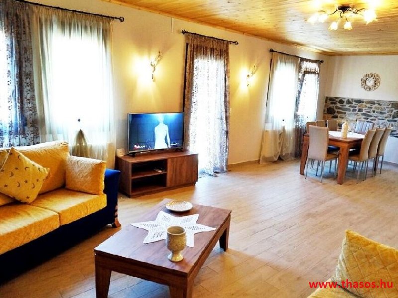 Fekvése: Skála Potámia - Aranyhomok parti életétől 3,5 km távolságra fekszik. A Skála Potámia-i Nagy strand távolságtól 3 km távolságra van. A villa a thassosi hagyományos építészetet követi kerámia tetőjével, a gondosan kiválasztott természetes anyagok, mint a kő, a beton, a fa és a vas kifinomult egyszerűséget biztosítanak a terekhez. A lakásbelső minden terében modern dizájn részletek stílusa, a modern és hagyományos elemek keveredése harmonikusan biztosítják az ott lakónak a pihenést. Márkás vászon és hagyományos görög művészeti tárgyak egészítik ki a díszítést, melyek vidéki lakosztályok kiváló esztétikájával rendelkeznek. Elrendezése: A földszint 3 légtérből áll. ÖNELLÁTÁS : A ház tisztaságát a vendég itt tartózkodása során maga biztosítja a részére rendelkezésre álló takarítószerekkel. A ház átvétele során a vendégek 100 Eurós felelősségbiztosítási kauciós összeget adnak át a szállás kulcsának átadója felé. Az érkezésre és a távozásra kötelező turnusnap nincs. Az ár 4-6 főre vonatkozik és nyaralási idő alatti takarítási költséget nem tartalmaz. Földszinti hálószobák száma 2db. Férőhely 2 és 2 felnőtt. Emeleti nappali : kinyitható kanapéágy 2 felnőtt részére. 6 fő részére. Mindhárom alvótér csecsemőággyal pótágyazható. 155 - 220 Euró/éjszaka (6 fő/lakás) A magas ár 15.06.-12.09.2026. közt. Időszaktól függően változó, Májustól - Szeptember végéig. Kérem érdeklődjön!