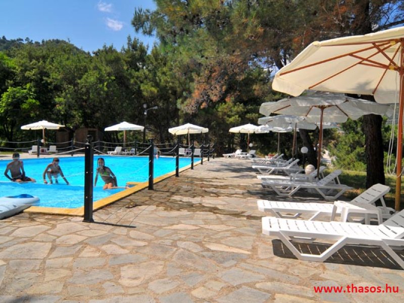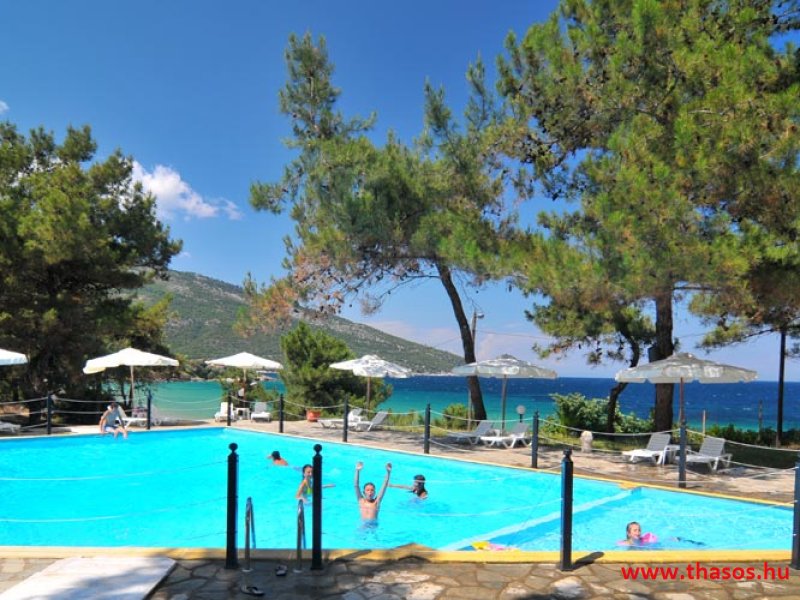A Bungalo Lutro területe Thassos legzöldebb területén és a legszebb homokos strandnál épült. E gyönyörű természeti környezetben a külső szemektől láthatatlanul bújnak meg a kicsiny, egyszerű épületek, kiváló kombinációval, úgy, hogy a természeti adottságokat is tiszteletben tartsák az építmények. A területen levő létesítmények, mik mindenféle szolgáltatást nyújtanak, egymástól nagy távolságra vannak. Így a szállásokon való pihenés maximálisan biztosított. A tengerparti területe is leírhatatlan szépséggel rendelkezik. 5 méter széles és kb. 500 méter hosszúságú finom homokú sekély, melegvizű tengerparti szakasza mindentől háborítatlan. A teljes terület panorámája a Kinira lakatlan szigetére és a Potámia falu felől emelkedő magas hegyekre nyílik a sziget keleti oldalán. Ez a fekvés, és a fenyőerdős természet a benne lakó összes énekesmadarával, a hajnali csodás napfelkelte egy csodát nyújt minden ott nyaraló vendégének.