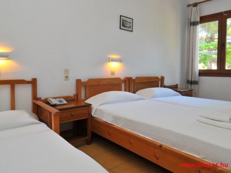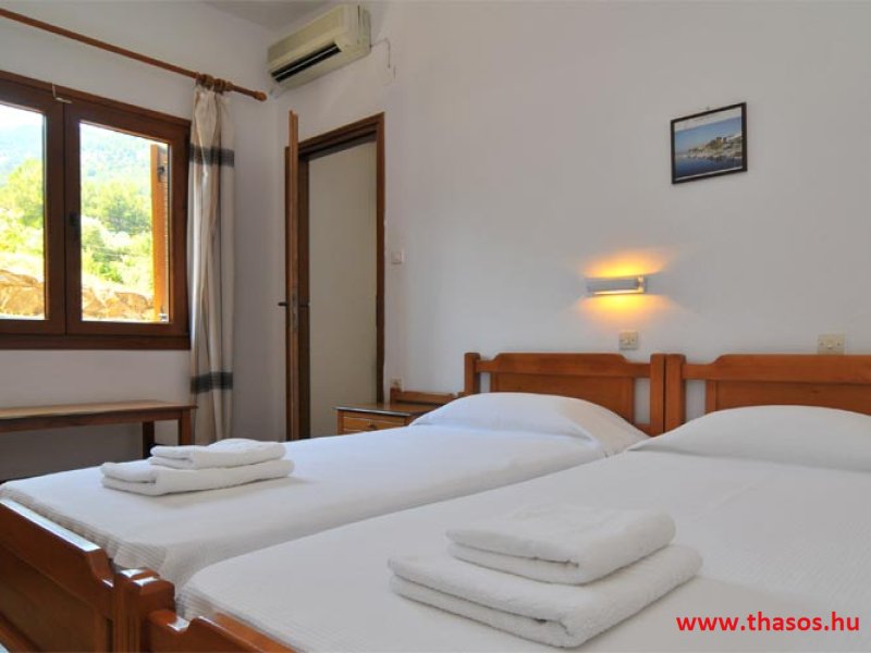 E szállást a romantikát keresőknek és a természet szerelmeseinek ajánljuk. 1.) 2 darab egyágyas szoba. 2.) 5 darab kétágyas szoba. 3.) 6 darab három ágyas szoba. Franciaággyal és egy normál méretű ággyal vannak berendezve. 4.) 7 darab négy ágyas, egy légterű stúdiólakás. 5.) 1 darab kettő légterű apartman, egymás közt ajtóval ellátott két hálószobás apartman a négy-öt tagú családok részére. 6.) 2 darab szomszédos lakás egy bungalón belül. Itt az ajtók egymás mellett vannak, a terasz a kettő lakáshoz közösen tartozik. A kettő lakáson belül máshol közös ajtós összekötés nincs. Ezt vagy kettő olyan párnak, hol vagy nagy gyermekek vannak, vagy mind a négy fő felnőtt és nagyobb függetlenséget szeretnének egymástól. Itt lakásonként kettő darab dupla ágy és egy egyszemélyes ágy van. Az egymás mellett levő kettő lakás mindegyikéhez tartozik saját toalettel ellátott zuhanyzótálcás fürdőszoba. Mindkét lakásban saját hűtőszekrény, légkondicionáló, ruhásszekrény és televízió van. Ezt a lakástípust egy nagy létszámú családra terveztük. A szállás évek óta állandó vendégkörrel rendelkezik. A törzs vendégköre a nyári nyaralása során, már foglalja és foglalózza helyben, a következő évi nyaralását is. Ez miatt, főszezon időszakban július és augusztuis, egy- egy lakás lehetőséget tudunk csak adni. A június és szeptember szakaszra esetlegesen tudunk adni 2 szoba lekérést is. Bár az is olykor csak az általunk felajánlott időszakban lehetséges. 4 ágyas kettő légtér ár: 4 főre Bővitett svéd asztalos reggelivel. Stúdió ár: 2 - 3 főre Bővitett svéd asztalos reggelivel. Kérem érdeklődjön! Kedvezményes árú lakások: I.a. I. b. Szintén a főépületben, a földszinten, de nem a folyosóról nyílva, önálló bejárattal és saját terasszal egy egylégterű ötágyas lakás. II. Az első bungalós lakások a főbejárat felől, a parttól 250 méter távolságra. Ezek az út felé néznek, de nem az utat látják, hanem erdős területet. Az úttól 25-30 méter távolságra vannak, kicsit alacsonyabb szinten. ÁRAK: