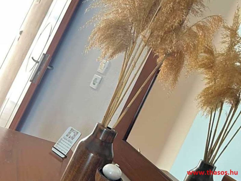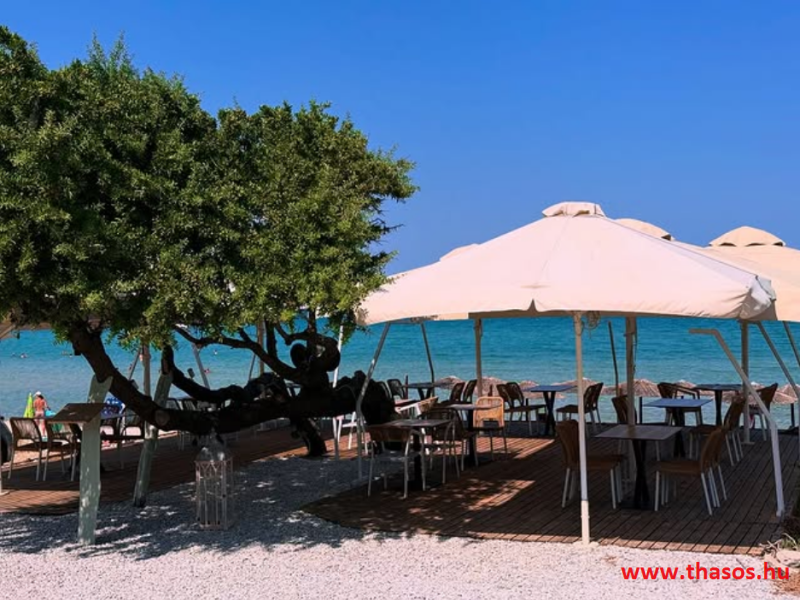 Elhelyezkedése a "Nagy strand" déli részén. Strandja elegáns, napágyakkal ellátott, széles fövényű. A strand homokos fövényének szélessége és az ott elhelyezett bérelhető napágyak mellett kényelmesen elférnek azok is, akik a saját napsátrukat szeretnék ott felállítani. A víz a szállás előtt sekély és áramlatmentes. Kisgyermekesek részére is kiváló. A szállás előterében a napközbeni strandolók ellátására szolgáló csendes kávézó és fagyizó bár várja a partról felsétáló vendégeket. A szállás vendégeinek a teraszról sincs teljes rálátása e bár-részre. A pihenés a nap és éjjel teljes szakaszban tökéletesen biztosított. Azon vendégeknek, akik esetleg reggeli vagy napközbeni taverna jelleget, snack-ellátást kérnek a lakásukba, erre van módjuk. Erre előfizetés nincs. Ennek részletes megbeszélése és kérése, ott helyben történhet. Felszerelése: Minden lakásban a normál konyhai tartozékok vannak. Közepes méretű, fagyasztórésszel ellátott hűtőszekrény, kétlapos villanyrezsó. Edények és kiegészítők szintén alap ellátásban. Kiegészítőként rendelkezik a konyha holland kávé- és teafőzővel. A kotyogót te hozd magaddal. Konyhai kiegészítőket is, ha nagyobb főzést szeretnél nyaralás alatt. A lakások fürdőszobái zuhanytálcásak és tolóajtós zuhanyzó ajtóval ellátottak. A lakások berendezéséhez tartozik a Tv és a légkondicionáló berendezés. A két apartman mindkét helyiségében külön légkondicionáló berendezéssel rendelkezik. Összességében kényelmes nagy lakások, hangulatos, szép kilátású teraszokkal. Nagyon igényes, ízléses a berendezése. EMELET N.2: 2+2 ágyas emeleti apartman 2015 -ös évben lett átadva. Egy hálószobás, 4 főre kényelmes. gyermek ágy elhelyezése lehetséges. Mind kettő helyiségerendelkezik légkondicionáló berendezéssel. Kettő terasszal rendelkezik. Pazar kilátással keletre, hol a tengerből kell fel a nap. De ugyan igy szeretik vendégei az északi, bejárat felőli hegyi kilátású teraszát is. A N1 studió és N2 apartman szomszédosak. Terasz elválasztó fal, nem létezik. Emiatt ajánlom baráti családoknak. Egyéb esetben a terasz választófal nélkülisége zavaró lehet. N. 1: 2+2 ágyas emeleti stúdió,- egy árnyalattal kisebb a szomszédos N:2-es lakásnál. Kettő normál ággyal és egy nagyméretű kinyitható kanapéággyal rendelkezik. FÖLDSZINT N. 3:. 2+2 +2 ágyas közepes teraszú, egy külön hálószobás apartman típusú lakás. A hálószoba franciaággyal, a nappali kettő személyes kinyitható kanapéággyal rendelkezik, akár négy közepes korú gyermek számára megfelelő mérettel. Terasza oldalsó fekvésben néz a tengerre, gyönyörű tengeri és hegyi kilátású, bár nem látszik a teljes 3 km-es öböl, csak a közepétől a déli csücskéig. N. 4. studió:. 2+2 ágyas Hatalmas méretű teraszú. Egy légterű studió lakás Francia ágy és kettő gyermek részére kinyitható kanapé ágyl. Bár oldal fekvésben van a tengerre, még is gyönyörű panoráma élvezhető a teraszról. A hegyre is azonos szép panoráma onnan. Baba ággyal pótágyazható. Reggelizési lehetőség: 14 Euró/fő/ nap/felnőtt - 2 éves korig ingyenes - 2-8 éves korig 7 Euró/fő/nap Képek a szállásról