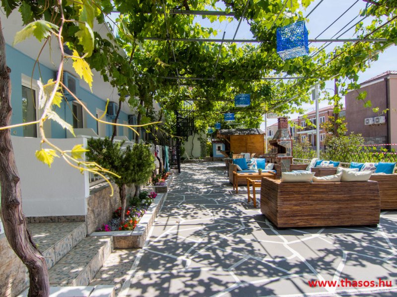 A környezete igényes. Belső kerti kiépítése pihenésre, beszégetésre, közös étkezés és sütögetésre felszerelt. A lakásbelsők közepes nagyok. A lakásokhoz egy kényelmes terasz tartozik. A déli fekvésű teraszt szőlő lugas fedi, láthatást adva az Ypsarió hegyre is.