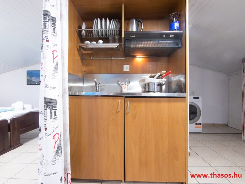 1 db emeleti egy légterű 4+2 fős stúdió az emeleten