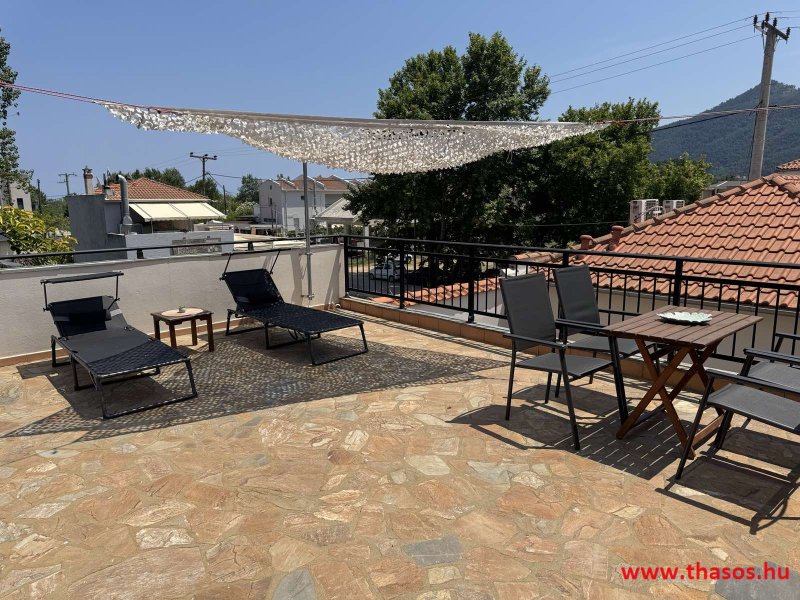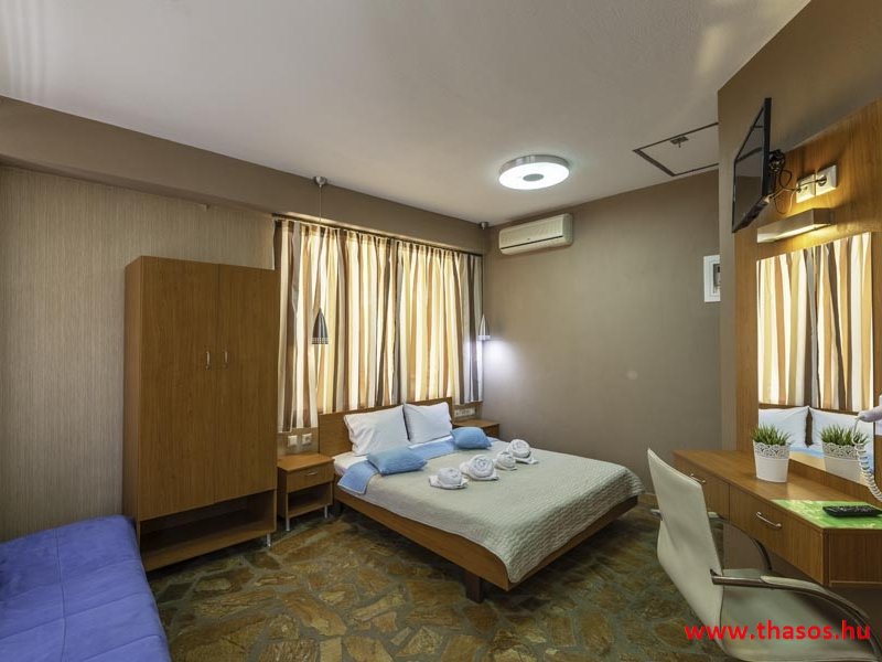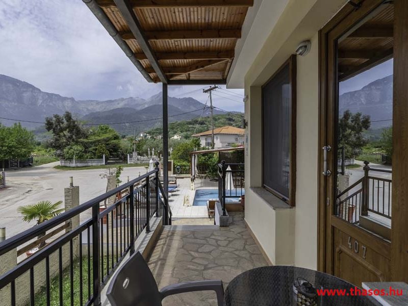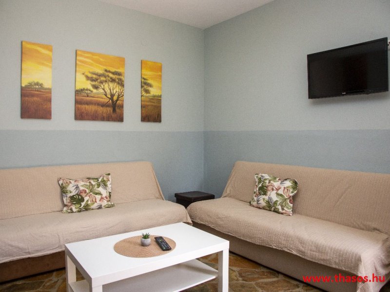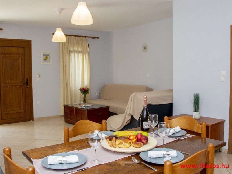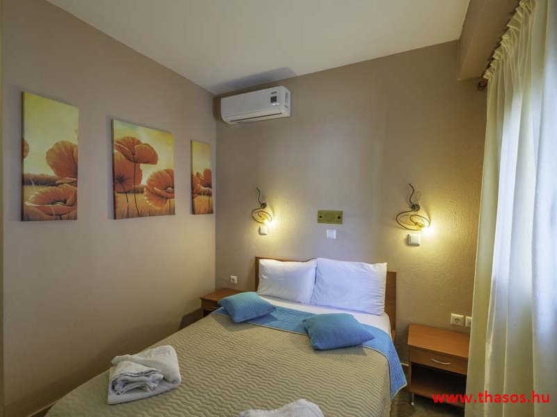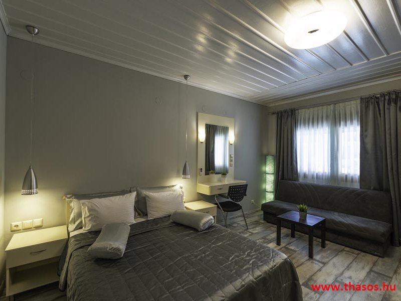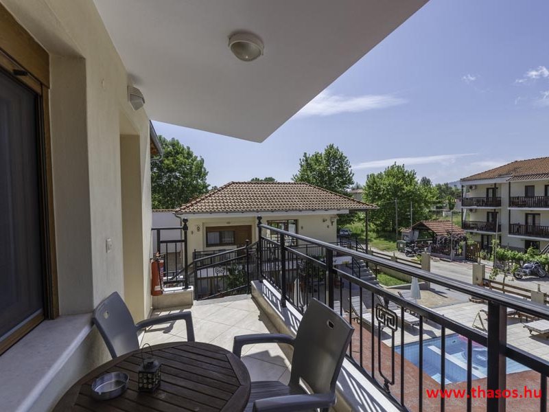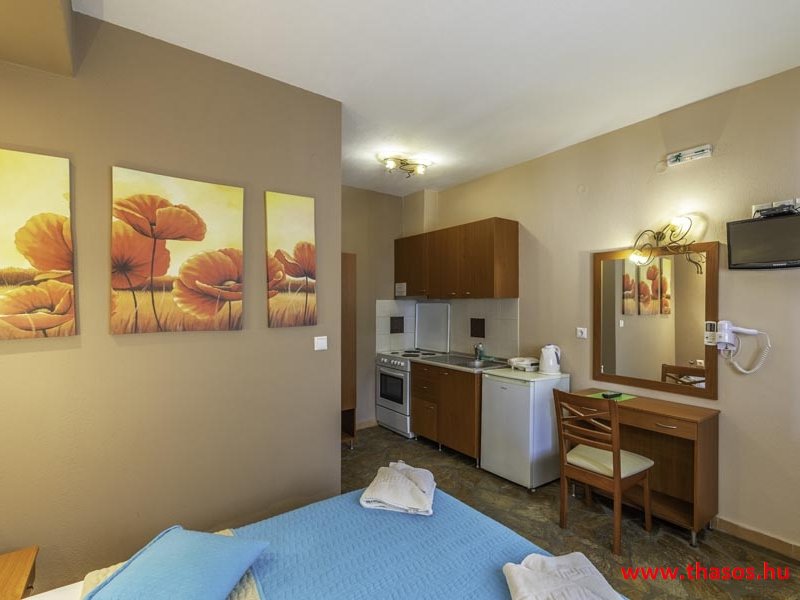 2026. évre új élet költözött ebbe a szálláskomplexumba. A gyönyörű szállás Skála Panagia camping part területe felett van. A szállás csupán néhány lépésre áll az Égei-tenger türkizkék vizétől és a híres Chrysi Ammoudia, azaz Aranypart strandtól. A közelben kristálytiszta vizű strandok, helyi taverna éttermek hagyományos ízekkel és festői ösvények találhatók, ahol sétálhat a tengerparton. A komplexum közepén egy lenyűgöző közös medence, amely ideális hűsítő csobbanásokhoz és pihenéshez a görög nap alatt. A medence speciális biztonsági intézkedésekkel van ellátva a gyermekek számára, hogy biztonságos és gondtalan élményt nyújtson a családok számára. Kényelmes napozóágyakkal és árnyékos területekkel van kialakítva, ideális környezetet teremtve a medencézés élvezetéhez. A lakások része a teljesen felszerelt konyha gyors ételek elkészítéséhez, valamint a hűtőszekrény. A lakások erkélyei tágasak, berendezettek, mint egy kis privát oázis. Ez a ház családi nyaralásra vagy párok részére ajánlott, kik természeti kalandokra vágynak. Teljesen felszerelt stúdióink és apartmanjaink ötvözik a modern kényelmet és az autentikus görög hangulatot. Csodálatos kilátást a tengerre és a zöld hegyekre. A ház közelében az ellátottság biztosított. Skála Panagia öböl közép-keleti részén mi található, mely a nyaraló vendégek ellátását szolgálja? Szupermarket, hentes, pizzériák, gyros tavernák, halas tavernák, kis kocsmák, élőzenés éjszakai parti taverna mind a szálláshoz közel. Élet és nyugalom harmonikusan. A szálláshoz tartozó partszakasz az öblünknek a kempingnél lévő lassan mélyülő, márványporos, hosszú bemenetellel, sekély, meleg vízzel rendelkező része. Lehetséges a napágy bérlés is, de lehetőség van saját törölközős csendesebb partszakaszt is választani. Ami miatt még igen kedvelt ez a partrész, az a három típusú vízisport lehetőség. Három vállalkozó bérel itt helyet: vízi sport, vízi járművek és kifejezetten kisgyermekesek részére vízi paradicsom ugráló is választható. A szálloda vendégeinek egyik legszebb élménye a különleges medencénkben való fürdőzés. A ház komplexuma rendelkezik kétágyas egy légterű stúdiókkal, háromágyas egy légterű luxus stúdióval, mazonett belső szintes apartmannal és a normál egy hálószobás apartmannal. Mindegyike kényelmes, magas színvonalú. Hangulatuk nyugodt, barátságos és kellemes. A vendégek maximális kényelme érdekében a lakások úgy lettek kialakítva, hogy a meghatározott számú személyt tudjanak befogadni, és nincs lehetőség pótágyak hozzáadására. Ez biztosítja az elegancia és a funkcionalitás ideális egyensúlyát, megőrizve a tágasság és a kényelem érzését. Egy légterű stúdió lakásai : Egyedülálló szállásélmény a fényűző és világos stúdióban, amely ideális azoknak a pároknak, akik eleganciát, kényelmet és nyugalmat keresnek. Modern kialakításával és kiváló minőségű felszereltségével ez a szálláshely ötvözi a luxust a hangulatos légkörrel, így tökéletes helyet teremtve a pihenésre és a feltöltődésre. A hálószobás apartmanok: Tágas, kényelmesen berendezett nappali - étkező, teljesen felszerelt konyhával rendelkeznek . A különálló hálószoba ideális környezetet biztosít a pihentető alváshoz, míg az elegáns belső kialakítás ötvözi a modern esztétikát a praktikummal. Tartózkodását további szolgáltatások teszik még kellemesebbé, mint például a műholdas TV a szórakozáshoz, a széf a személyes tárgyainak biztonságához és az ingyenes piperecikkek a modern fürdőszobában. A ház teljes korszerűsítése a mai friss színekkel, bútorokkal, anatómiai ágybetétekkel, stb. 2025 szezonzárás után történt, amiről szezonkezdet előtt fotógaléria frissítést teszünk. Addig is a régi képek állnak rendelkezésünkre. Superior stúdió Kétágyas stúdió Apartman Maisonette Executive stúdió Standard háromágyas szoba, földszinten Standard családi apartmanszoba, földszinten Basic háromágyas szoba, 1. emelet Basic családi apartmanszoba, 1. emelet Medence felőli oldal: Kert felőli oldal: A megadott ár tartalmazza az extra, helyben fizetendő turisztikai adót is. A mazonette és az apartman esetén az árak 4 fő/éjszaka/lakásra vonatkoznak. Azok lehetnek 5 fősek is. Térítési díj az extra főre 10 Euró/éjszaka/mazonette vagy apartman lakás. Egyéb lakások nem pótágyazhatók. Összesen 20 lakással rendelkezik a teljes házkomplexum. Közvetlen medencés lakások, mazonettek, apartman és a standard lakások. Egy lakás esetén: Érkezés és a lakás elfoglalása 14:00 órától. Távozás és a lakás átadása: 10:00 - 11:00 óra között. Képek a szállásról Superior stúdió Kétágyas stúdió Apartman