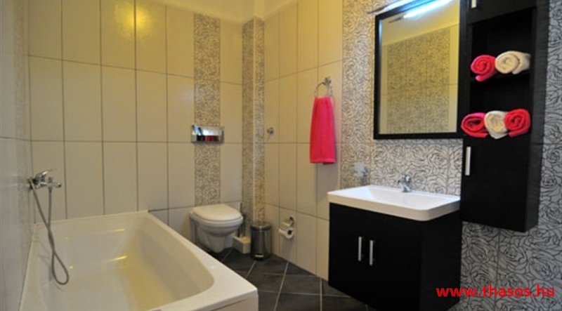 - Fürdőszoba fürdőkáddal és toalett, hajszárító.