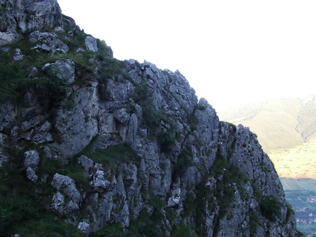 Itt balra, a lapos hegytetőn állt valaha a vár. Orbán Balázs a XIX. sz. második felében még láthatta. Ma már csak az avatott helyiek tudják, hogy a sziklákon hol álltak valaha a falak.