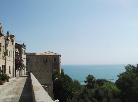 A kikötővároskák egy része régi, a part menti dombokon az óvárosi részekkel. Végül Porto San Giorgio, Grottammare, San Benedetto del Tronto óvárosi részeit meg se néztük, csak Torre di Palme szirtjére kapaszkodtunk fel. Bűbájos minimális város. Azon gondolkodtunk, hogy ezek a picik közigazgatásilag biztosan csak falvak, de mégis városok, hiszen városfallal erődített települések, fönt a púpon, hogy az őrszem messzire ellásson…