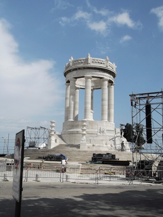 Innen irány Ancona. Megtaláltuk az első világháborús katonai emlékművet, ez felkapott kilátóhely, mert komoly mellvéd húzódik előtte a part felett. Az emlékművet tatarozzák, előtte sátrak voltak felállítva, minden bizonnyal a vasárnapi vitorlásverseny tribünje készült.