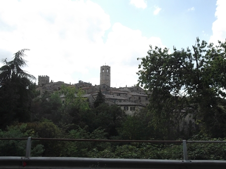 Amandola városán keresztülhajtva jól lehet érzékelni a régi várost. Meglepődtünk, mikor odaértünk… azt hiszem, azért itt sem megy be az országút a városkapun, de nem vagyok biztos benne. Egyszercsak megjelennek a robusztus városfalak, a masszív kőházak, hirtelen szembetalálkozunk a jókora csipkés toronnyal… és ilyen élményünk másutt is volt.