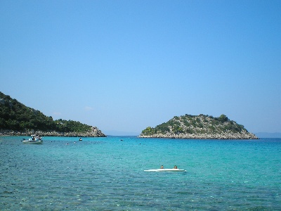 Elindultunk, nagyon sok kicsi sziget mellett mentünk el, úticél: a kocsmasziget. Van neki rendes neve, de senki sem jegyzi meg, a köztudatban így él. Orebiccel szemben van, ha valaki át akar menni, akkor a parton integet, kijön érte egy motorcsónak és átviszi. Nagyon sok hajós kiköt és jókat eszik. Nagyon finom a tonhal-salátájuk pirítóssal, és utána a kellemesen hűs sör.