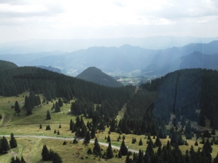 Tovább. Pamporovó, a síközpont volt a cél. A Sznezsánka-csúcsra a legfelső sílift működik nyáron is és hétfőn is. (Hétvégén még két felvonó üzemel.) Megtaláltuk az állomását, fellibegőztünk a csúcsra (a mi jánoshegyi libegőnknél úgy másfélszer-kétszer hosszabb és magasabb). Majd a tévétoronyban föllifteztünk a büfé szintjére. Onnan még egy szintet föl lehetett volna lépcsőzni a nyitott teraszra, de ahhoz valahogy nem volt gusztusunk, inkább csak üvegen keresztül bámészkodtunk és fényképeztünk, és kajáltunk, hogy legyen jogcímünk ott ücsörögni. A világ tetején… 2019 m magasan.