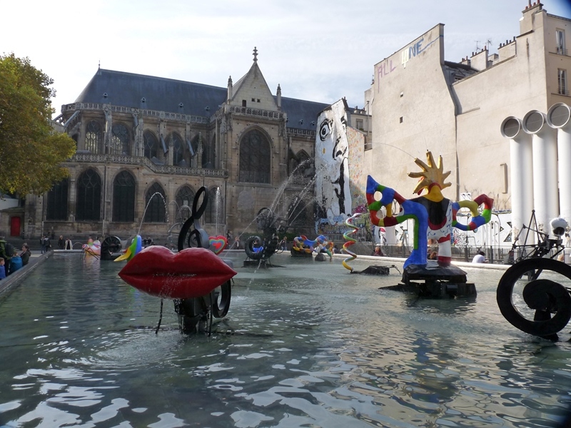 A Pompidou Központ a modern művészetek háza. Elsőre bontásra ítélt gyárépületnek vagy befejezetlen építkezésnek tűnik. Kicsit olyan, mintha kifordították volna. A közmű vezetékek ugyanis kívül helyezkednek el az épületen, funkciójuk szerint eltérő színekben. Előtte hatalmas szökőkút, benne kissé gyermeki lélekre valló nagyon színes, modern műalkotásokkal, amelyek mindegyike forog, spriccel a szökőkút közepén. Nincsenek rá szavak. Számomra vicces.