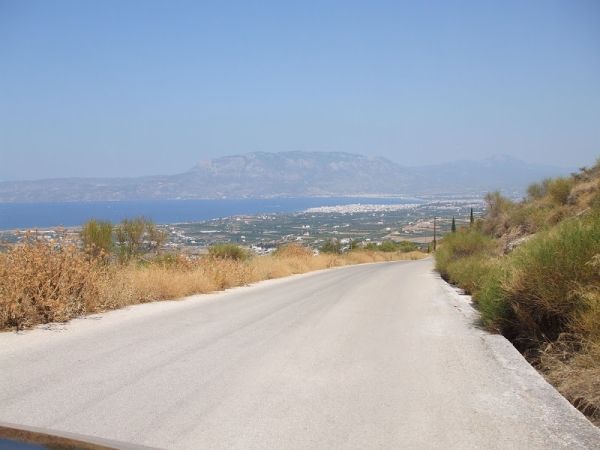 Így bedobom a fiúknak az ötletet, mi lenne, ha alapon. Mire kifejtem a dolgot, már oda is érünk a Kastro táblához, és mivel a sofőrnek tetszik az ötlet, már jövünk is kifelé. Kis keskeny úton találjuk magunkat, el kell haladnunk a falu mellett. Majd tovább egyenesen, és becsatlakozunk a régi főútba – Palaia Ethniki Odos –