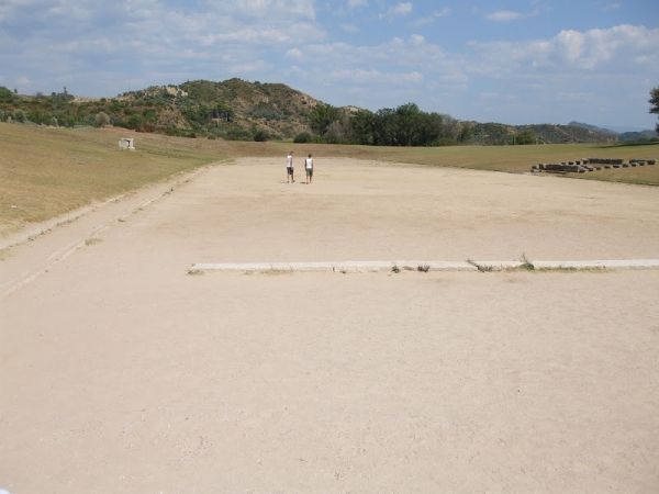 Nekem, azt hiszem, a két legjelentősebb hely Héra temploma, ahol még mostanság is lángot gyújtanak, négyévente, és hát a stadion. A stadion, amit mindenki ismer, de mégsem. Mert nem olyan, mint amilyennek látszik. Nagyobb, sokkal nagyobb. Eredetileg terveztünk egy oda-vissza futást, de egyrészt rettenetes forróság van, másrészt járni is alig tudok, nem még futkosni. Így hát másokat figyelünk, hogyan válnak egyre apróbbá, ahogy távolodnak. De ők sem futnak, csak sétálnak. Egyszer csak őrült sípolás hasít bele a kabócák muzsikájába. És nem értjük. Csak állunk, nézünk egymásra, és nem értjük. Most akkor mi van? Aztán rádöbbennünk, mi a gond. Nem, nem az a gond, hogy valaki ráült egy kőre, vagy épp kezeivel simítja az ódon idők emlékeit. Az a gond, hogy Apukám felhajtotta a hasán a pólót, és úgy sétál. Nem, nem vetkőzött le, csak egy kissé felgurította a hasán, védekezvén a meleg ellen. De ezt nem lehet, olyannyira nem lehet, hogy haragos sípszó a jutalom. Tudom, hogy vannak szabályok, öltözködési és viselkedési illemformák, amiket szigorúan vesznek, na de könyörgöm, ezt itt nem érzem helyénvalónak. Egyrészt, mert nem fedett, zárt helyiség, másrészt, tényleg nagyon meleg van. Harmadrészt ez az OLIMPIAI STADION – így nagybetűvel, a stadion, ahol az ókori futók meztelenül futottak. Vagy tévednék? Mindegy, a póló visszagördül a pocakra, és magunk mögött hagyjuk a sípoló ellenőrt. Mert ellenőr, és nincs egyedül. Így, hogy tudjuk, mit keressünk, már látjuk őket, lelepleződnek előttünk. Már előbb is felfigyeltem egy egyedülálló sétálgató lányra, de nem jöttem rá, hogy mi a furcsa benne. Így teljesen nyilvánvalóvá válik, hogy őrzik a helyet. Álcázzák magukat, turistának, traccspartizó fiatalnak, de ott vannak, és figyelnek. Tehát, aki erre jár, jól gondolja meg, mit cselekszik, és hogy öltözik, nehogy megbotránkoztassa a sípot.