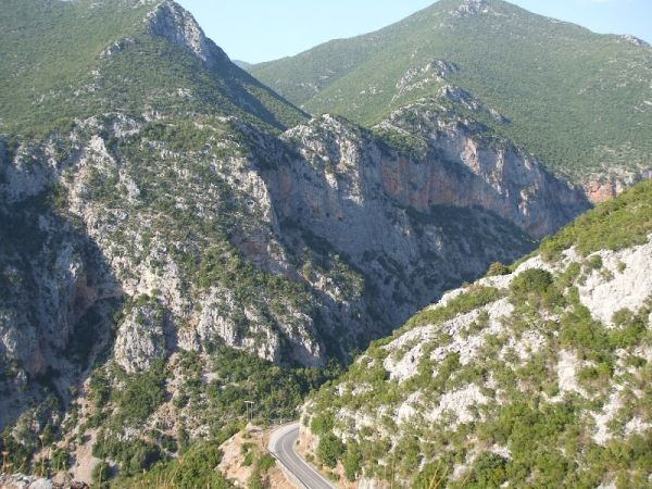 Innen nem visszafelé indulunk, hanem át a Tajgetoson, Kalamata felé. Ez Görögország egyik legszebb útvonala. És tényleg az. Kanyargós, néhol keskeny, de jó minőségű úton haladunk, nem sietünk, mert látni szeretnénk, merre is járunk. Néhol egyszerűen kivájták a sziklát, hogy elvezethessen alatta az út. Megállni csak elvétve lehet, mert ehhez nem adottak a feltételek. Azért a sziklaalagútnál kiugrom a kocsiból, és az út peremén bandukolok tovább, sűrű kattintgatások közepette.