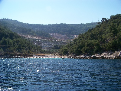 Hétfő reggel őrült erővel sütött a nap, elindultunk a kajakkal a Márványpart felé. Jó nagy hullámokban mentünk és a Kis Márványpart előtt a csücsökben megláttuk a Nagy Márványpartot. Két hajó volt kikötve, egy háromtestű és egy yacht, két kocsi volt a parton és három pár, aki turistaruhában ücsörgött a parton. Nagyon szép volt, űrbéli csend volt, a hullám kottyanását sem hallottuk, nagyot úsztunk és irány vissza. A tenger visszafelé nagyon nyugodt volt, betértünk a Golden Beach előtti kicsi öbölbe, és irány haza a Centrum strand. Az öblön való átkelés nehéz, mert több ellentétes áramlat befolyásolja a haladást, főleg a Nagystrandnál erősek, ilyenkor kormányozni is kell.