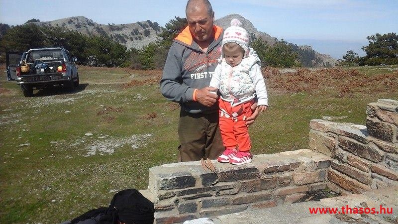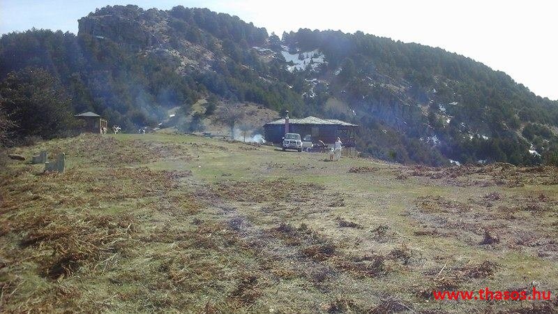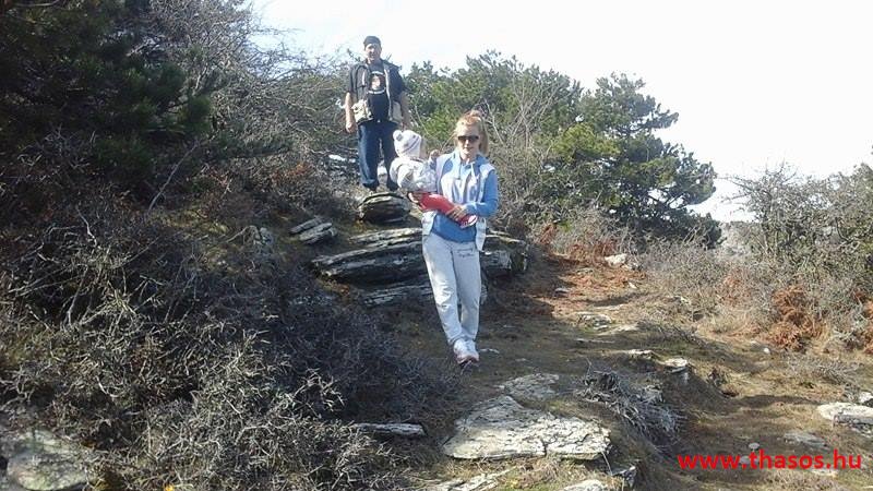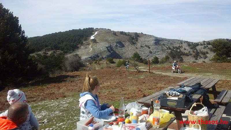 A menedékháznál nagy élet volt. Theologosból fiatalok több napra kibérelték a házikót és fent laktak. Már épp hazakészülődtek odaértünkre. Panagia falujából is vagy 10 motoros verte fel a természet madárcsicsergéses csendjét. A családos férjek szombati kirándulásra jöttek fel. A kecskeugrató motorjukkal a legnehezebb szakaszt választották a biztos kaland élményéhez.