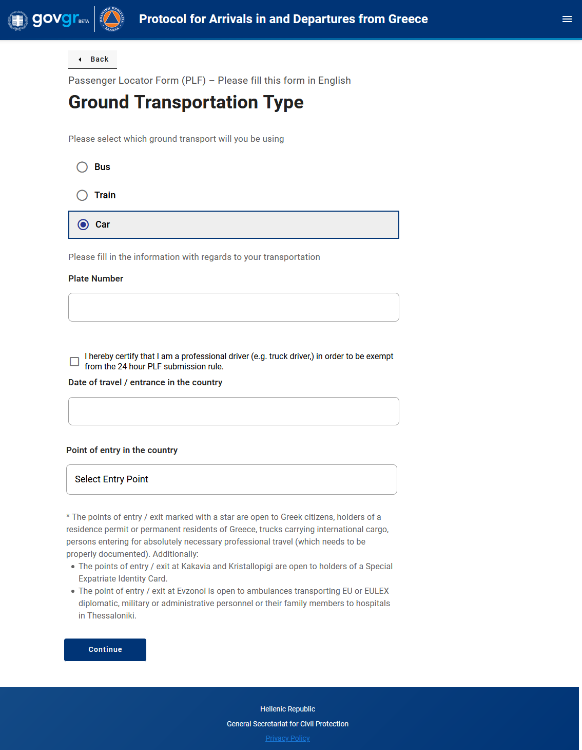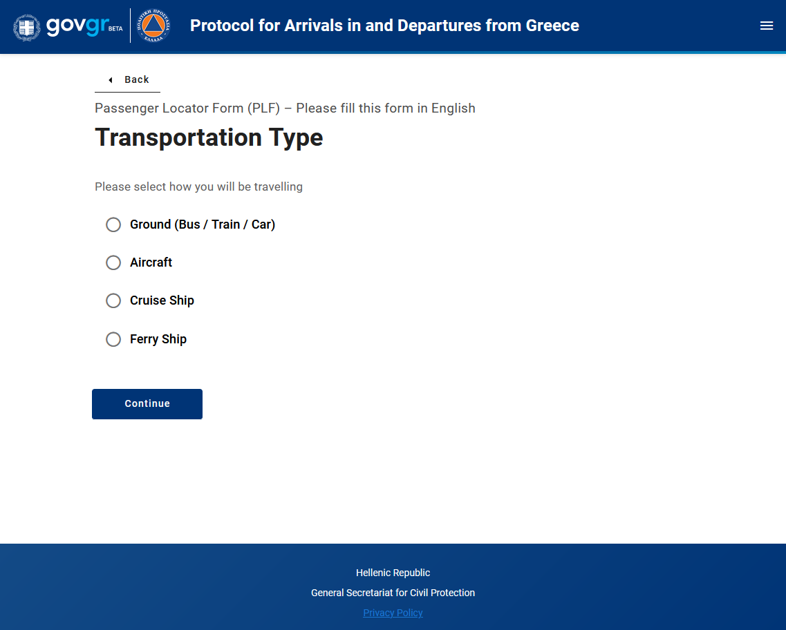 A görög kormány Közegészségügyi Hatóságának kiadott rendelete szerint a Görögországba utazóknak 24 órával a várható érkezés előtt regisztrálniuk kell egy angol nyelvű online adatlap kitöltésével.