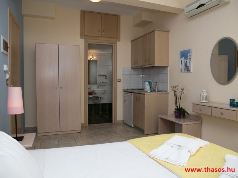 N1. Stúdió: Franciaágy 2 főre/ tengeri panoráma./ Teakonyha nincs. Babaágy nem helyezhető el.