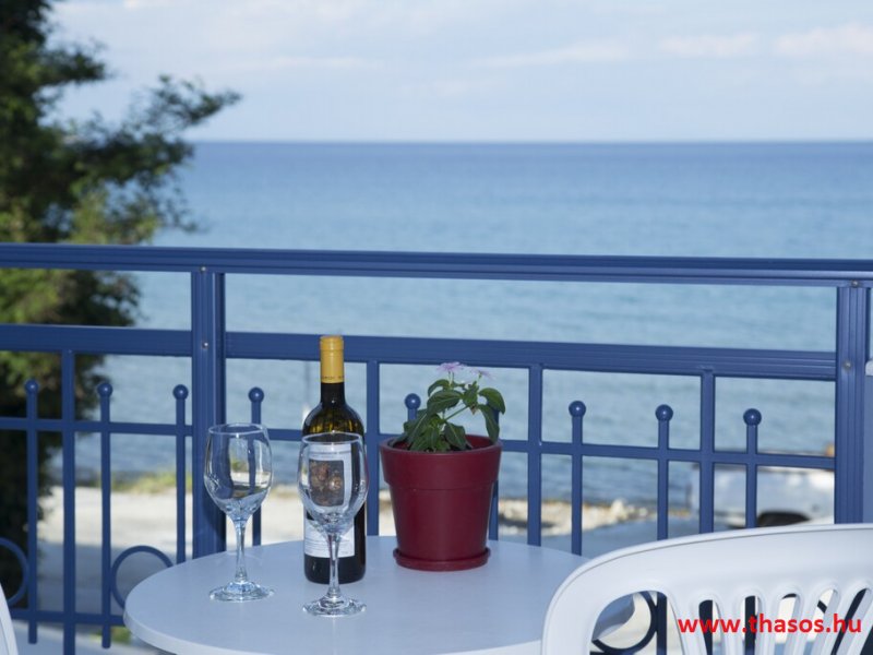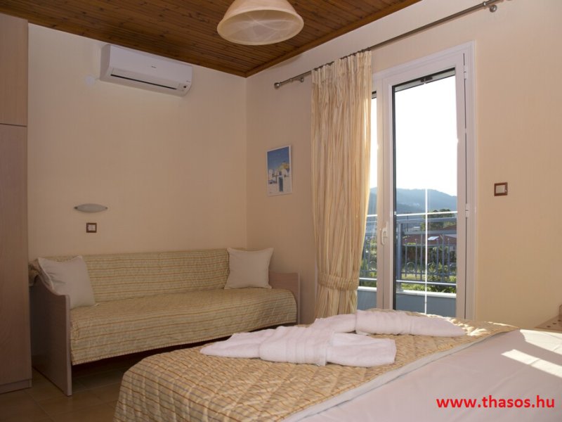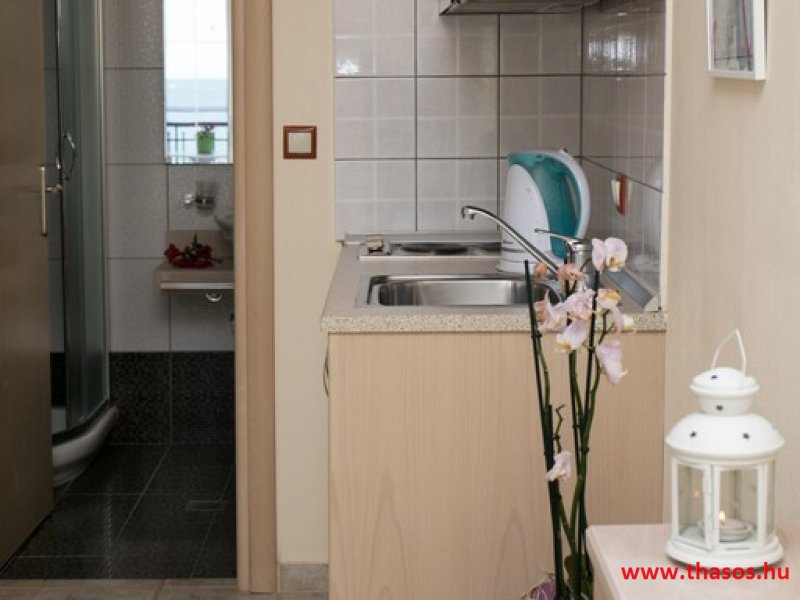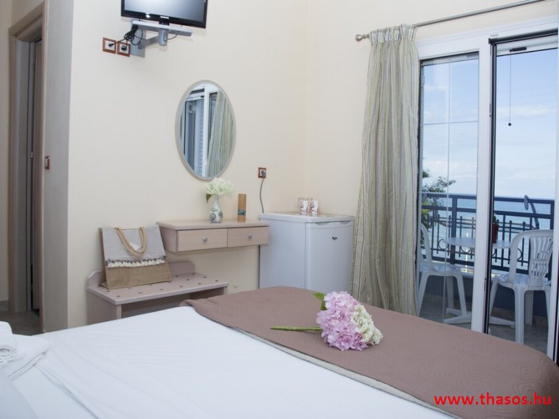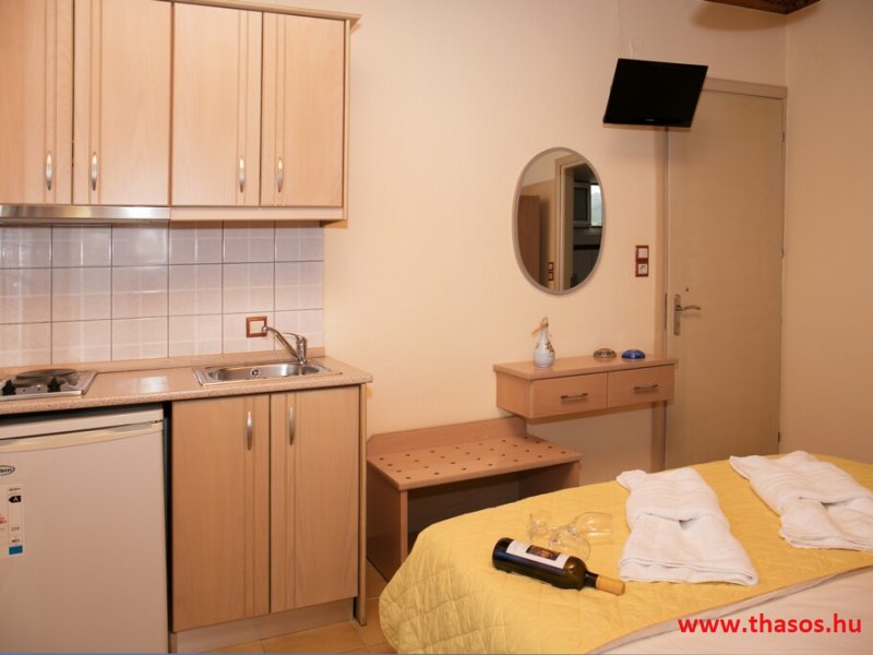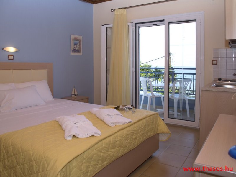N2. Stúdió: Franciaágy 2 főre+ egy ágy/ tengeri panoráma./ Teakonyhás. Babaágy is elhelyezhető.