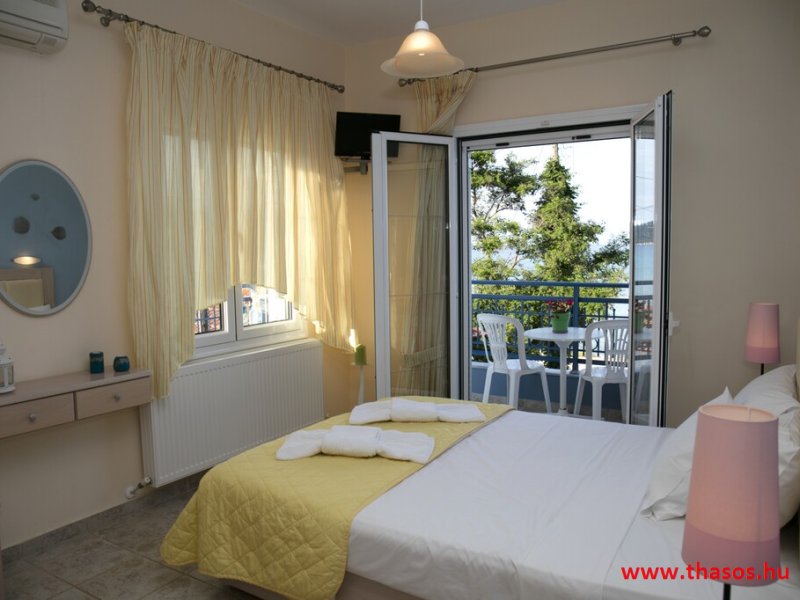 Fekvése: a központi nagystrand és a centrum között. Nyugodt környék. Gyalogos bejárat a saját strandja felőli földes bekötőútról. Ez az út gyér forgalmú, leginkább a gyalogos strandolókat jelenti. Az esti órákban kizárólagosan csak gyalogosan, a centrum tavernákhoz vezető sétányként használható. A partszakasz és a strand keskeny, közvetlen a víznél homokos, de az út felől sóderes, sekély vizű. Újonnan épült, jól berendezett és felszerelt tágas lakásokkal. Az autók parkolására az Árion apartman előtti magán aszfaltúttal szemközti bérelt telek szolgál. Annak megközelítése az Árion apartman felől javasolt. A lakások A ház kellemes előkertjében a vendégek elfogyaszthatják saját lakásukból lehozott koktéljukat, kávéjukat stb. Ha a szállásadótól szeretnének rendelni (kávé, sör, meleg szendvics, fagylalt, stb… ), arra is van mód. Csak a saját vendégei részére biztosítja ezt a minimális lehetőségű snack-bár jelleget. Egyéb szolgáltatása: Wifi-internet költségmentes. Első emelet Második emelet Apartman ár: 4 főre Stúdió ár: 2 főre_ extra fő 10 Euró/éjszaka/lakás Július 1- Augusztus 30. dátum közti időszakban 2 főre is 3 fős árat kér a szállásadó. Kérem érdeklődjön! Képek az öbölről