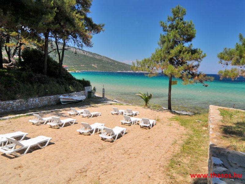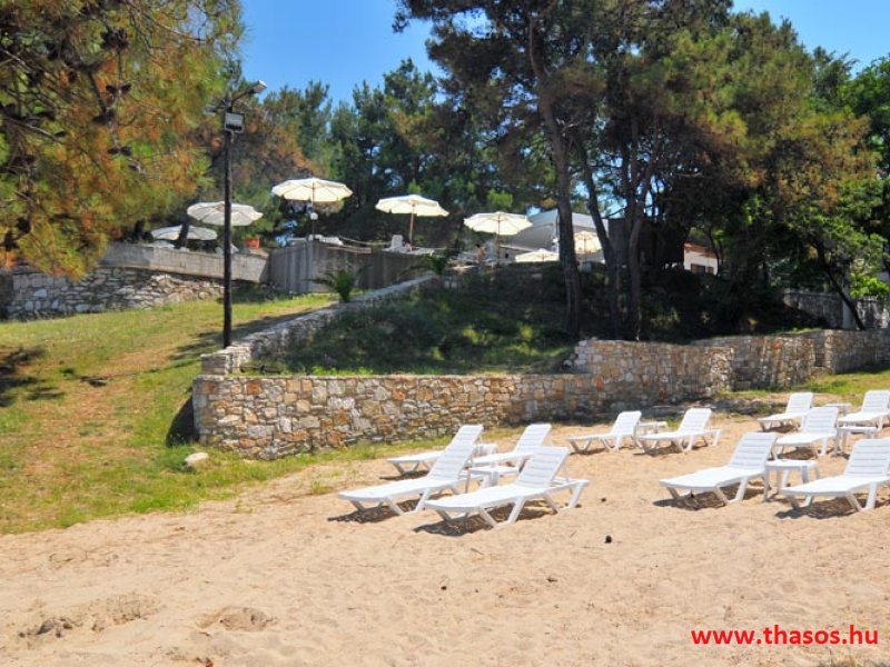 A Bungalo Lutro területe Thassos legzöldebb területén és a legszebb homokos strandnál épült. E gyönyörű természeti környezetben a külső szemektől láthatatlanul bújnak meg a kicsiny, egyszerű épületek, kiváló kombinációval, úgy, hogy a természeti adottságokat is tiszteletben tartsák az építmények. A területen levő létesítmények, mik mindenféle szolgáltatást nyújtanak, egymástól nagy távolságra vannak. Így a szállásokon való pihenés maximálisan biztosított. A tengerparti területe is leírhatatlan szépséggel rendelkezik. 5 méter széles és kb. 500 méter hosszúságú finom homokú sekély, melegvizű tengerparti szakasza mindentől háborítatlan. A teljes terület panorámája a Kinira lakatlan szigetére és a Potámia falu felől emelkedő magas hegyekre nyílik a sziget keleti oldalán. Ez a fekvés, és a fenyőerdős természet a benne lakó összes énekesmadarával, a hajnali csodás napfelkelte egy csodát nyújt minden ott nyaraló vendégének.