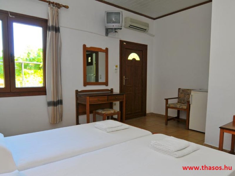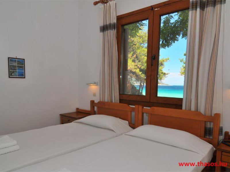 E szállást a romantikát keresőknek és a természet szerelmeseinek ajánljuk. 1.) 2 darab egyágyas szoba. 2.) 5 darab kétágyas szoba. 3.) 6 darab három ágyas szoba. Franciaággyal és egy normál méretű ággyal vannak berendezve. 4.) 7 darab négy ágyas, egy légterű stúdiólakás. 5.) 1 darab kettő légterű apartman, egymás közt ajtóval ellátott két hálószobás apartman a négy-öt tagú családok részére. 6.) 2 darab szomszédos lakás egy bungalón belül. Itt az ajtók egymás mellett vannak, a terasz a kettő lakáshoz közösen tartozik. A kettő lakáson belül máshol közös ajtós összekötés nincs. Ezt vagy kettő olyan párnak, hol vagy nagy gyermekek vannak, vagy mind a négy fő felnőtt és nagyobb függetlenséget szeretnének egymástól. Itt lakásonként kettő darab dupla ágy és egy egyszemélyes ágy van. Az egymás mellett levő kettő lakás mindegyikéhez tartozik saját toalettel ellátott zuhanyzótálcás fürdőszoba. Mindkét lakásban saját hűtőszekrény, légkondicionáló, ruhásszekrény és televízió van. Ezt a lakástípust egy nagy létszámú családra terveztük. A szállás évek óta állandó vendégkörrel rendelkezik. A törzs vendégköre a nyári nyaralása során, már foglalja és foglalózza helyben, a következő évi nyaralását is. Ez miatt, főszezon időszakban július és augusztuis, egy- egy lakás lehetőséget tudunk csak adni. A június és szeptember szakaszra esetlegesen tudunk adni 2 szoba lekérést is. Bár az is olykor csak az általunk felajánlott időszakban lehetséges. 4 ágyas kettő légtér ár: 4 főre Bővitett svéd asztalos reggelivel. Stúdió ár: 2 - 3 főre Bővitett svéd asztalos reggelivel. Kérem érdeklődjön! Kedvezményes árú lakások: I.a. I. b. Szintén a főépületben, a földszinten, de nem a folyosóról nyílva, önálló bejárattal és saját terasszal egy egylégterű ötágyas lakás. II. Az első bungalós lakások a főbejárat felől, a parttól 250 méter távolságra. Ezek az út felé néznek, de nem az utat látják, hanem erdős területet. Az úttól 25-30 méter távolságra vannak, kicsit alacsonyabb szinten. ÁRAK: