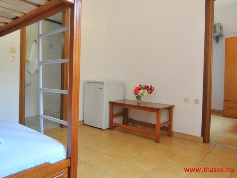 2 darab 4 ágyas egylégterű stúdió: felnőttek részére franciaágy, a gyermekek részére emeletes ágy, hol az emeletre feljutáshoz biztonsági rögzítéses létra van és az emelet védőráccsal van ellátva. A többi lakás felnőtt ágyai kettő normál típusú ágy egymás mellé helyezve.