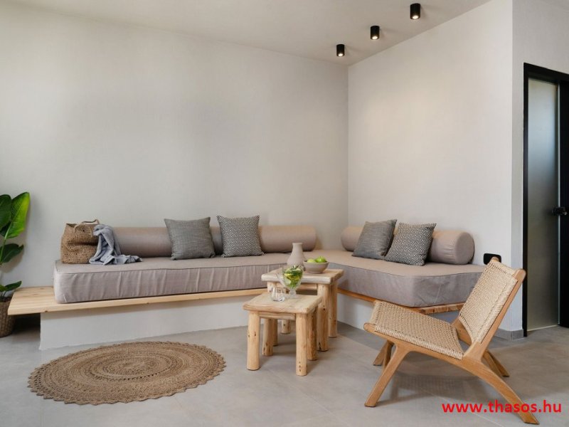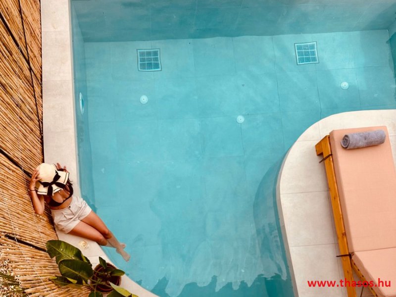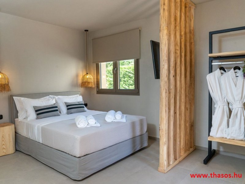 Az újonnan épült Arany Homok hotel mindössze néhány méterre áll a Golden Beach arany homokjától az öböl közepén. A nyers természeti szépséggel tökéletes összhangban épült Thassos szigetének Aranypart öble közepén, mely a Natura 2000 európai ökológiai természetvédelmi területén található. A luxus egy másfajta értelmezését javasoljuk, amelynek semmi köze a lenyűgöző elemekhez, csak a természet adta szépséghez, magas komforttal a tartózkodás első percétől az utolsó percig kínál élményeket. 10 stílusos lakosztály, mindegyik modern esztétikával, mediterrán napsütésben az Égei-tenger csodás látványával. Az épületrendszer a parti strandfövénybe épült bele. Természetes szépségét a kő és a fa elegáns kombinációja fokozza, békés és harmonikus légkört teremtve, amely tökéletesen beleolvad a környező tájba, mely egyik oldalon az Ypszarió fenyves hegyvonulata, másik oldalon a homokbuckás tenger. A medencéi, mint a tenger folytatása a lakásokhoz épültek hozzá. A lakásbelsők bútorzata és minden eleme mind az épület mellett folyó patak, a tenger és a hegy ölelését adja vissza tökéletes mediterrán hangulattal. 10 elegáns lakosztály földes hangulattal és bohém bájjal, amelyek készen állnak arra, hogy egyedi és felejthetetlen élményeket kínáljanak Önnek. Az Arany Homok hotel öt különböző kategóriájú lakosztállyal és egy egyedi esztétikai megjelenésű közös úszómedencével rendelkezik, amely modern kényelmi és szolgáltatási lehetőségek széles skáláját kínálja, lehetőséget adva az ügyfél igényeinek megfelelő választásra. Szolgáltatás: Hideaway -Lakosztályok kertre néző kilátással Éden lakosztályok tengerre néző kilátással Natura lakosztályok Natura lakosztályok tengerre néző kilátással Sunrise lakosztályok/tengerre néző - saját magán medencével Apartman ár: 4 fõre Időszaktól függően változó, Május 20-tól - Október közepéig: 150-550 Euró. Reggeli szolgáltatás 15 Euró/fő/nap/ extra költség. Kérem érdeklődjön. Képek a szállásról Hideaway -Lakosztályok kertre néző kilátással Éden lakosztályok tengerre néző kilátással Natura lakosztályok Natura lakosztályok tengerre néző kilátással Sunrise lakosztályok/tengerre néző - saját magán medencével Képek az öbölről