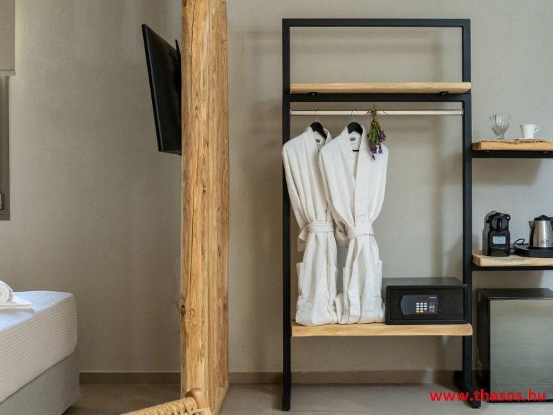 Egyedülálló, kétszintes lakosztályok a harmadik épület legfelső emeletén, 44 négyzetméter alapterülettel, mesés kilátással a tengerre. A táj természetes szépsége tökéletesen tükröződik a földszínekben és a bohó dekorációban. Minden lakosztályban van egy franciaágy az emeleten, a földszinten pedig egy nappali, , ahol két egyszemélyes ággyá alakítható kanapé van, így akár 4 fő befogadására alkalmas a lakosztály, valamint egy privát erkély, ahol leülhet, pihenhet, és kényeztetheti magát a káprázatos napfény, a tiszta kék ég és a kék tenger, a természet hangjai és a békés táj élvezetében.
