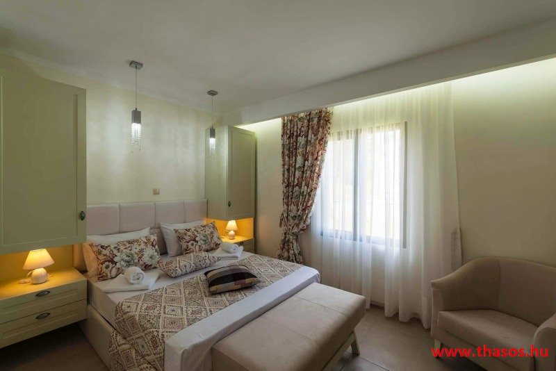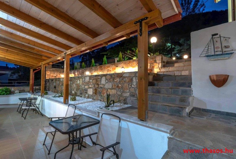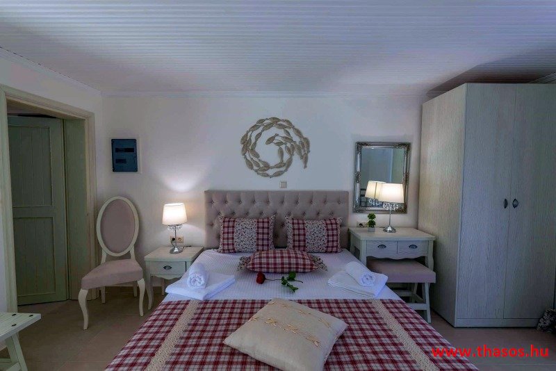 Az Anna ház teljes felújítása 2021. február végére fejeződött be. A szállás magas kategóriával és új környezettel várja vendégeit. A szállás új nevet is kapott: Anna lak. Fekvése: Négylakásos magán villa a hegyoldal egy kis dombján, fantasztikus kilátással tengerre és hegyre, valamint az ófalura. A szálláshoz vezető út a központi úttól 150 m-re nyílik. A szálláshoz kanyarodni a főútnak az Anna pék és a bankautomata és hangulatos tavernák feletti csomópontjánál kell. Ettől az elágazástól a tengerpart 300m, vagy a főúton megközelítve a strandot 500 méter távolságra van. A kert tenger felé eső részében az apartman fekszik, mely 5 fő befogadására alkalmas. A hegy felé eső oldalon 2 db 2+1 ágyas stúdió. A konyhasarok és az étkező a hálórésztől elkülönített helyiségben van. Az egy légterű stúdiók bejárata a ház keleti és nyugati oldalán. Teraszaik egybe nyílóak. A lakásokban zuhanytálcás fürdőszoba van. A lakásokhoz egy maximálisan felszerelt külső konyha elkülönített térben van . A kertben felette a magán parkoló jobbra és balra. A flekkenező, kerti étkezők verandás, szőlőlugasos. A kerti étkezőben lehetséges a gáztűzhelyen serpenyőzés és egyéb erős illatú ételek elkészítése. Minden lakásnak tágas, nagy terasza van. A teraszokon modern kerti bútorok, napozóágyak szolgálják a vendégek kényelmét a pihenéshez, olvasáshoz. A lakások saját teraszán kívül minden lakás előtt van még extra kertrész, mely arra szolgál, ha a lakásban pihen valaki, akkor az egyéb kerti kiülőknél beszélgethetnek, étkezhetnek a baráti társaságok stb. A mazonett apartman alsó részén is van terasz fantasztikus kilátással a hegyre a tengerre és az ófalura. Az alsó szint hálószobájában hálószoba berendezés és franciaágy.. A felső szinten szintén fantasztikus kilátású terasz. A lakásba menve nappali, konyhasarok étkezővel és kettő, felnőttre méretezett ágy. Légkoncicionáló berendezés, plazma Tv. A kettő szint közt csigalépcső. LUXUS KATEGÓRIA 2 db 2+1 ágyas stúdió. Nagyméretű anatómiai franciaágy és az ágyból kiemelhető felnőtt méretű normál ágy. Minden lakásban van hely egy csecsemőágy elhelyezésére. Ezt a szállásadfó biztositja. Időszaktól függően változó, Április 20 től- Október 10-ig Ha a létszámtól eltérés van, a szállásadóval egyeztetés után, egyéni árat kaphat a foglaló. Kérem érdeklődjön! Képek az öbölről