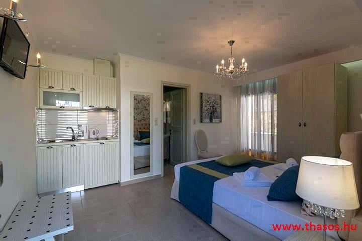 1 db 2+2+1 ágyas egy hálószobás apartman. Nagyméretű franciaágy, és kettő darab nagyméretű egy-egy személyes kanapéágy. Minden ágy anatómiai ágybetétes.