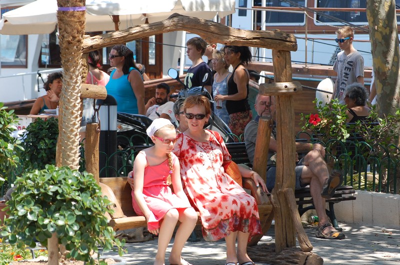 Nagyon jó kis kirándulás volt egy jól felkészült idegenvezetővel, aki az IBUSZ-tól volt, egy egész napos túra elé néztünk. Először megnéztünk egy kerámiakészítő műhelyt, majd Lindosz várát. A járművek többségét kitiltották a fellegvár alatti faluból, ezért a buszok fent egy parkolóban álltak meg. Innen séta a főtérig, majd a keskeny utcák útvesztőjén keresztül-kasul a lankás dombon, ahol műtárgyak, kézműves termékeket árusító üzletek sorakoznak, hangulatos bárok között séta a fellegvárig. Laurával csacsiháton mentünk fel, amit a főtéren lehetett bérelni vezetővel néhány euróért, ezt már itthon eldöntöttük. Nagyon nagy élmény volt mind a kettőnknek. Lindosz az egyetlen hely a szigeten, ahol még látunk egyszobás házat, melyet a lányos családok adtak az ifjú párnak (kivéve a török negyed). Az Akropoliszra vezető út meredek, de biztonságos. Elég fárasztó túra. Ezért mentünk mi csacsival. A csacsik egészen más úton haladnak. Annyira figyelnek a tisztaságra, a turistákra, ahogy egy csacsi kiengedte, ami felesleges, azonnal jön egy ember és takarít.