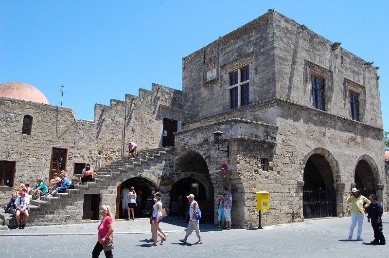 11 kapuja van a várnak, amit most használnak. Ki-be, körbe-körbe, ezt játszottuk 7 napon keresztül. Mindegyik kapu más-más kialakítású és kinézetű, és többnyire csak gyalogosok és robogók férnek át rajta. Az egyik kapu a Szabadság-kapu, ezen besétálva a Lovagok utcájához érkezünk, ez volt a lovagi élet központja egykoron. Napközben a Lovagok utcáján a turisták ezrei nyüzsögnek, ez egy kicsit zavaró, de este, mikor a lámpák kigyulladnak, az mindenért kárpótol, csendesebb, nyugodtabb a varázslatos atmoszférája, mi természetesen ezt is megnéztük és átéltük. A várfalon belül kizárólag csak lovagok éltek. Majd a török uralom idején csak a törökök és a zsidók élhettek itt. Mecsetek, könyvtárak között, stukkódíszítéses faerkélyek között sétálva egyszer csak a Hippokratész téren találjuk magunkat .Ez az Óváros egyik legjelentősebb találkozóhelye. A tér közepén egy középkori szökőkút, a tetején egy miniatűr minaret, amit sajnos a galambok sokszor ellepnek.