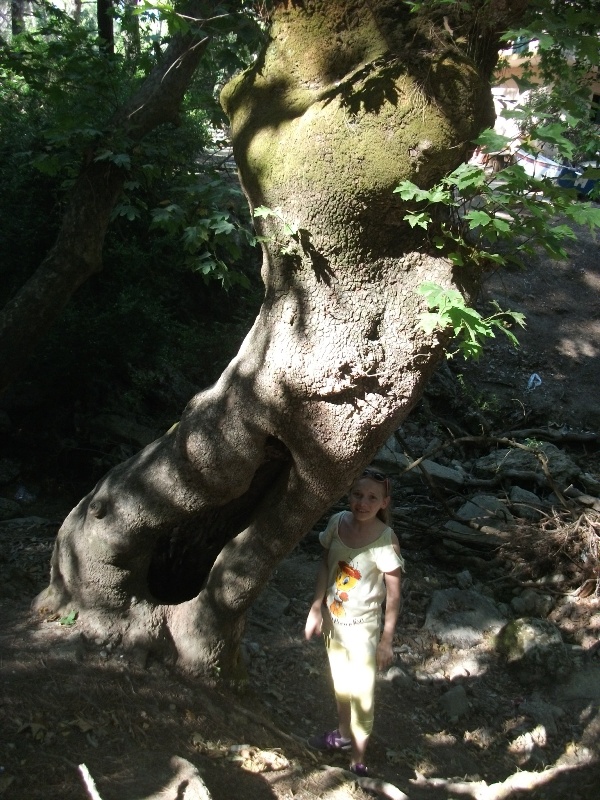 Ezek után a Pillangók völgye sajnálatomra kimaradt, helyette a Hét forrás völgyét néztük meg. Semmi különös, egy szép völgy, benne hét forrással. Az idegenvezető azt mondta, hogy olyan, mint Szilvásvárad, de mi mint egriek, akik sokat jártak Szilvásváradon, ezt nem véltük felfedezni, ettől függetlenül jólesett a hűvös völgyben sétálni. Utunkat tovább folytatva még megálltunk egy ősi platánfánál, aminek a belsejében 14-en fértek el. Onnan indultunk vissza Rodosz városába, fél 7-re meg is érkeztünk. Egy gyors vacsora és irány az Óváros ismét.