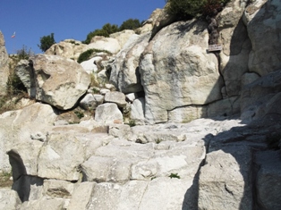 A dombon van ugyan más maradvány is meg trák erőd nyoma is, meg a közelben – állítólag csak 100 m-re a bozótban – sziklából négyszögletes koporsóként kivágott sír is, de ugye engem már figyelmeztettek, hogy maradjak veszteg…