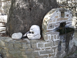 Az utunk Kardzsali felé Aszenovgrádnál ágazott el, tehát vissza kellett menni a városba. Megkerestük az Angyali Üdvözlet templomát, annak is az utca felőli kútját. Információkeresés közben, mikor aszenovgrádi képeket nézegettem, feltűnt egy kép, egy kutat ábrázolt, ahol halfejekből folyik a víz. Kell hogy legyen valami jelentősége, ha lefényképezték… Addig kutattam, amíg találtam egy újságcikket, ami szerint pár éve csőtörés volt ott, és arra gondoltak a helyiek, hogy helyreállítják a kutat és felelevenítik a régi hagyományt, ami szerint Szőlőmetsző Szent Trifon napján bor folyik a kútból Azt nem tudtam a bolgár szövegből a google-fordítóval kisillabizálni, hogy csak a felavatáskor vagy minden évben Szent Trifon napján megtörténik-e a szertartás… de találtam képeket, amin a pap éppen megáldja a cuccot, aztán kis poharakban osztják a bort az ott álló híveknek