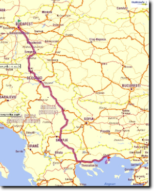 A határokon mindenhol simán átjutottunk. A sebességhatárokat általában betartottuk. Pontosabban csak Macedóniában, a fõutas részen volt olyan, hogy két német mikrobuszos mögött "vonatoztam", olyan 100-120-as tempóban. Rendõrt sem túl sokat láttunk.