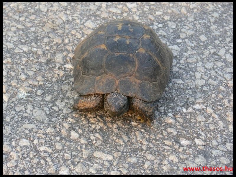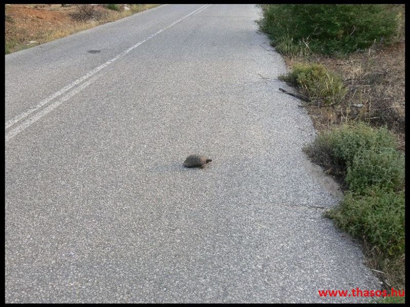 A hazafele vezetõ úton még egy kis teknõst is láttunk az úton átmenni elõttük. Gondolom megunta az út bal oldalán lévõ olajfaligetet és átment a jobb oldaliba. :)