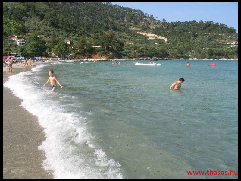 A partról visszatérve Panaggiából mentünk le Chrisi Amoudia tengerpartjára. Ott fürdõztünk még egy keveset és indultunk haza. A strand a szigeten tapasztaltakhoz viszonyítva zsúfolt, de nagyon lassan mélyülõ finom homokos.